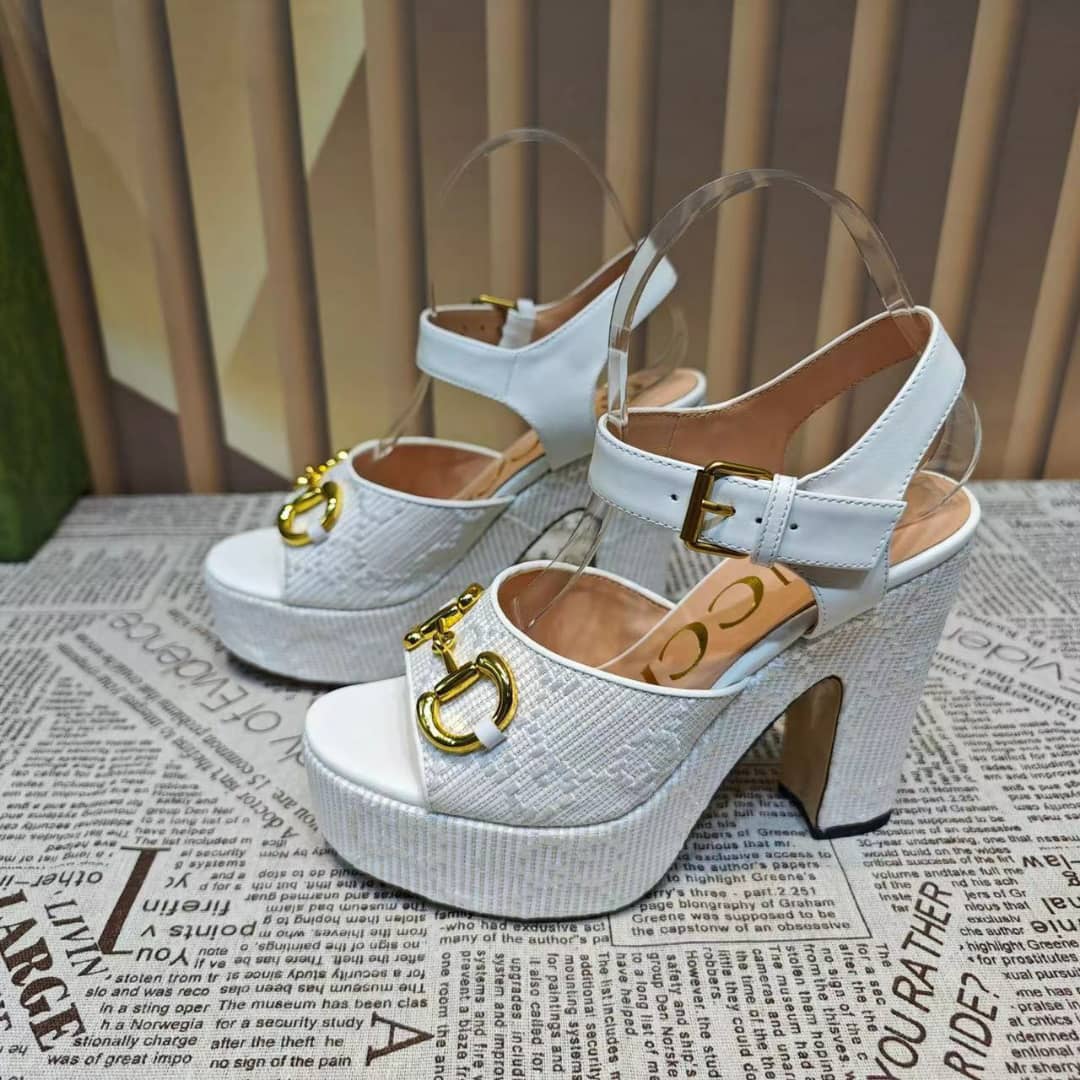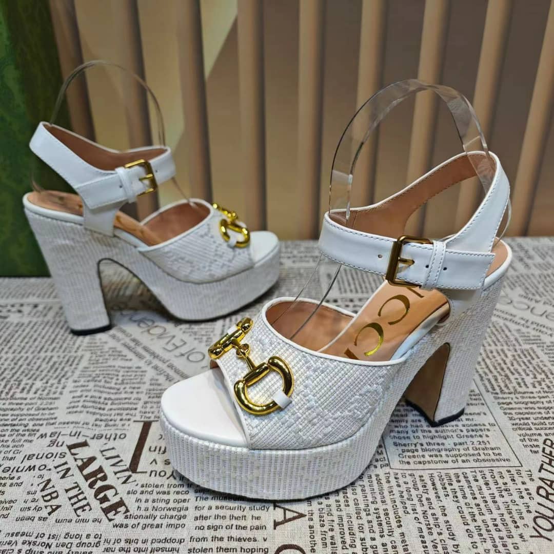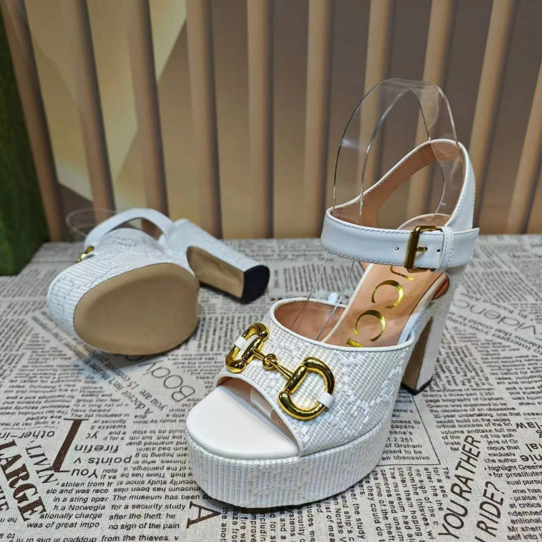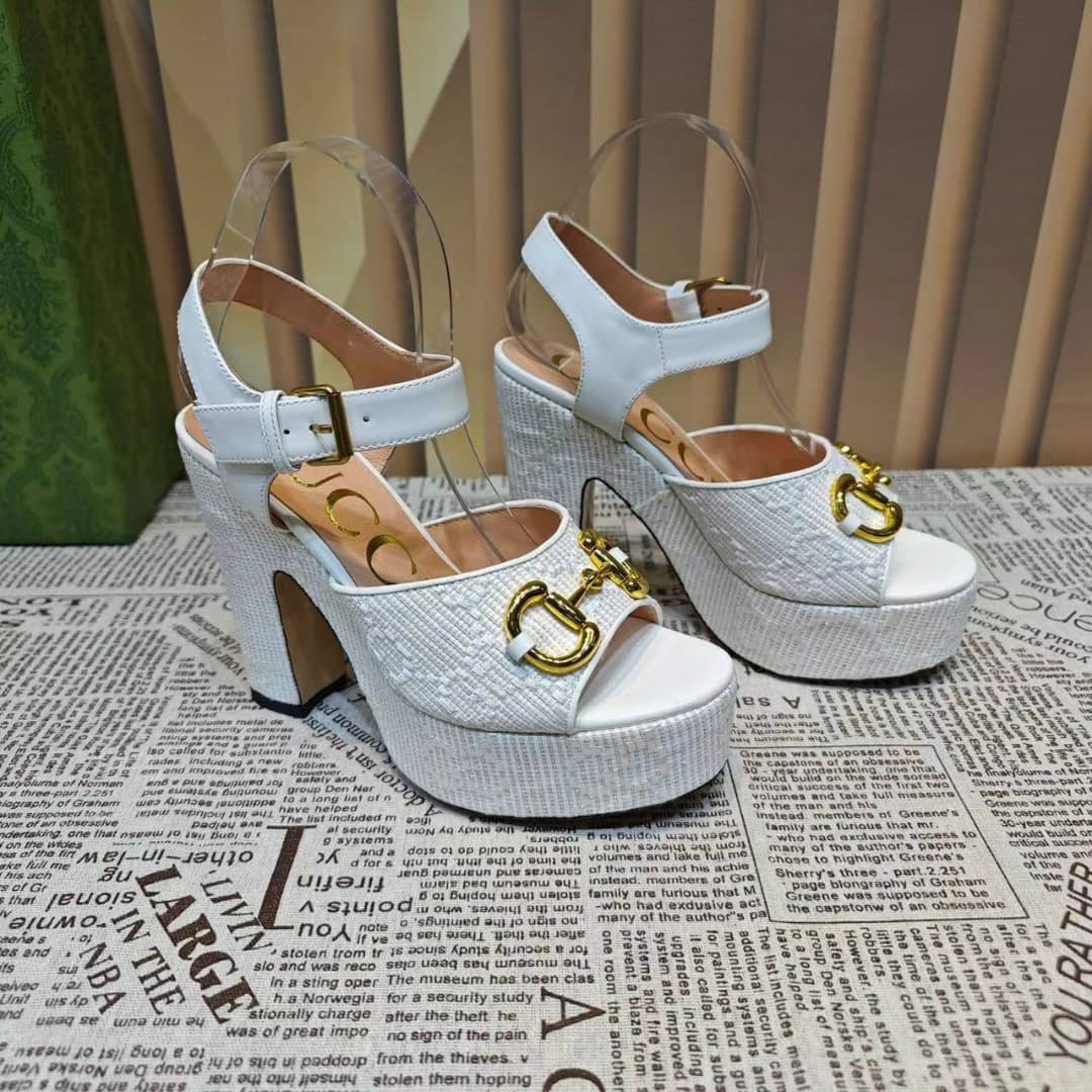 Home Shop Shoes Gucci Shoes Gucci Horsebit Platform Sandal Gg Embellished ?White