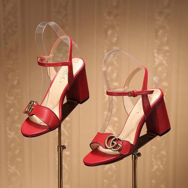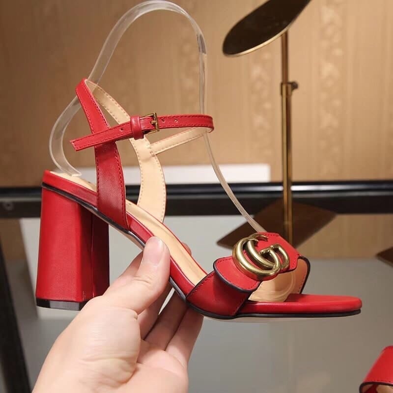 Home Shop Shoes Gucci Shoes Gucci Leather Mid Heel Sandal Red