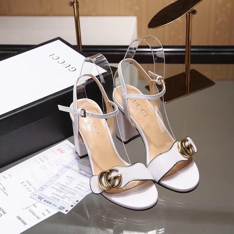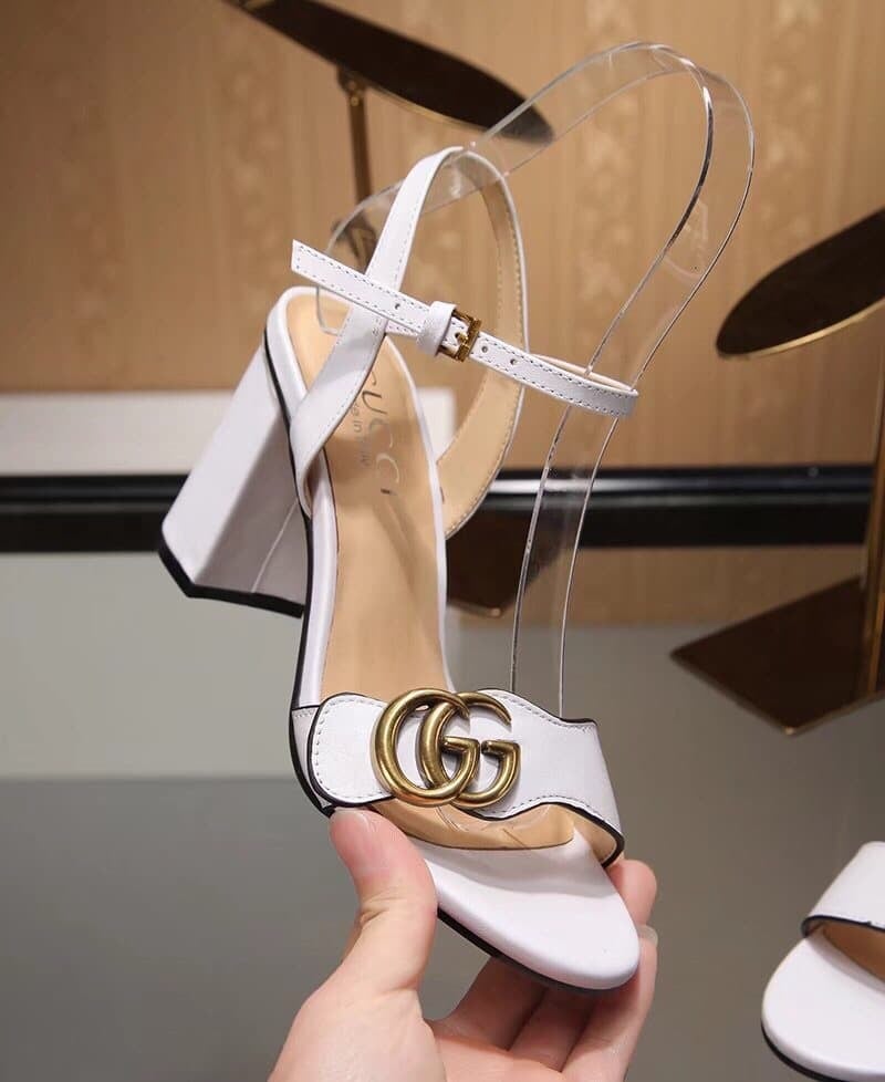 Home Shop Shoes Gucci Shoes Gucci Leather Mid Heel Sandal White