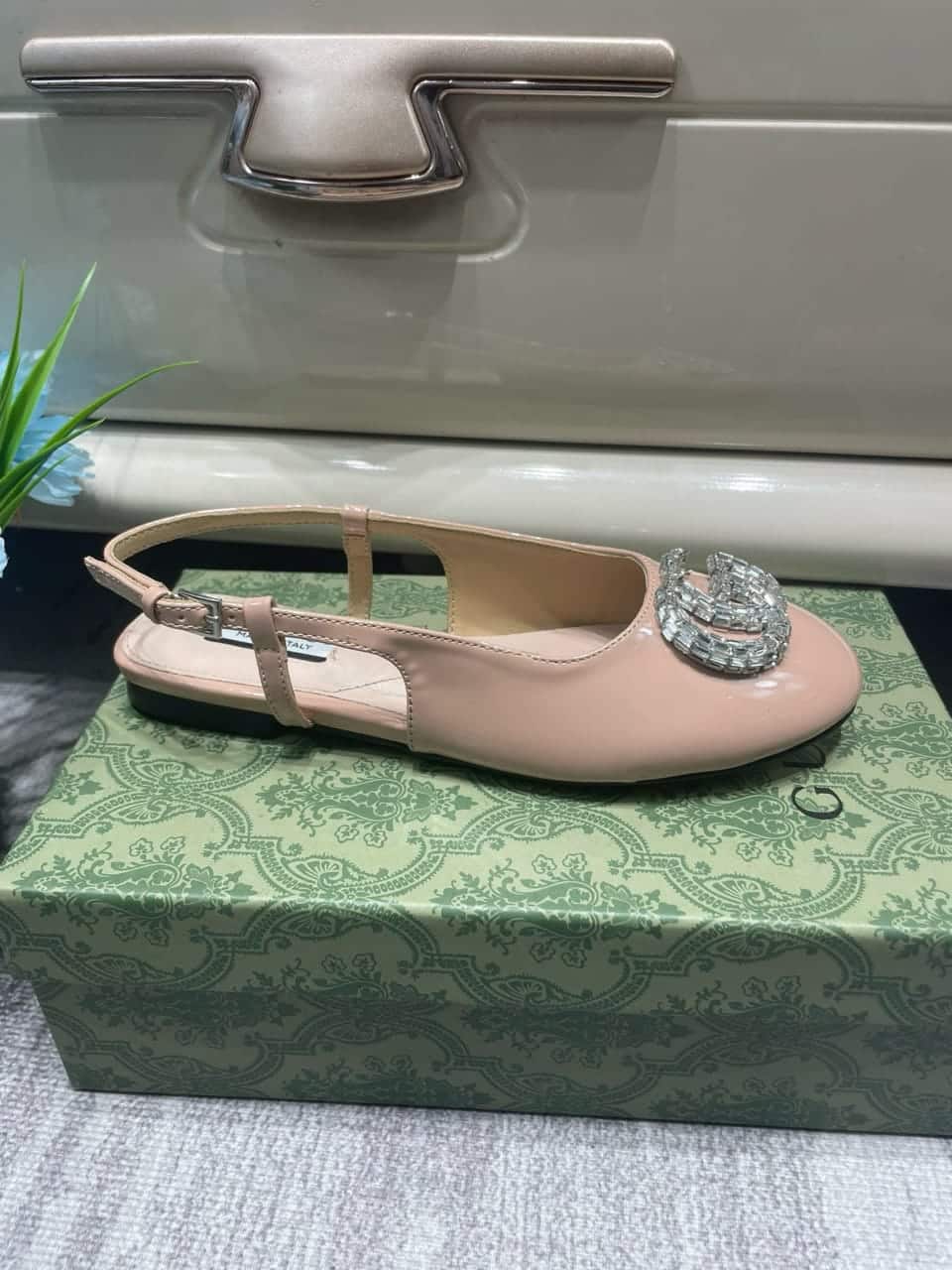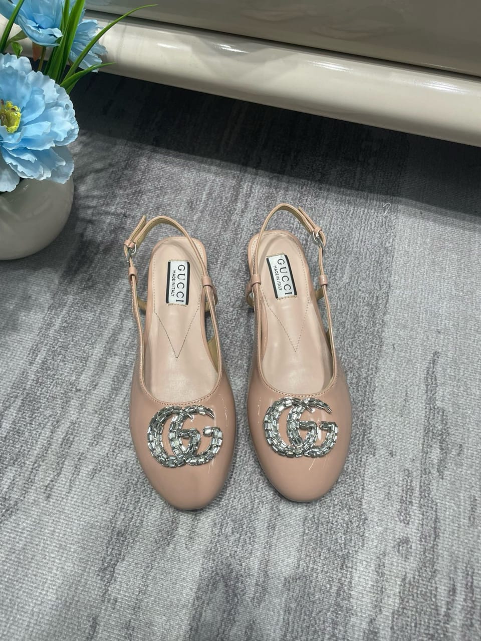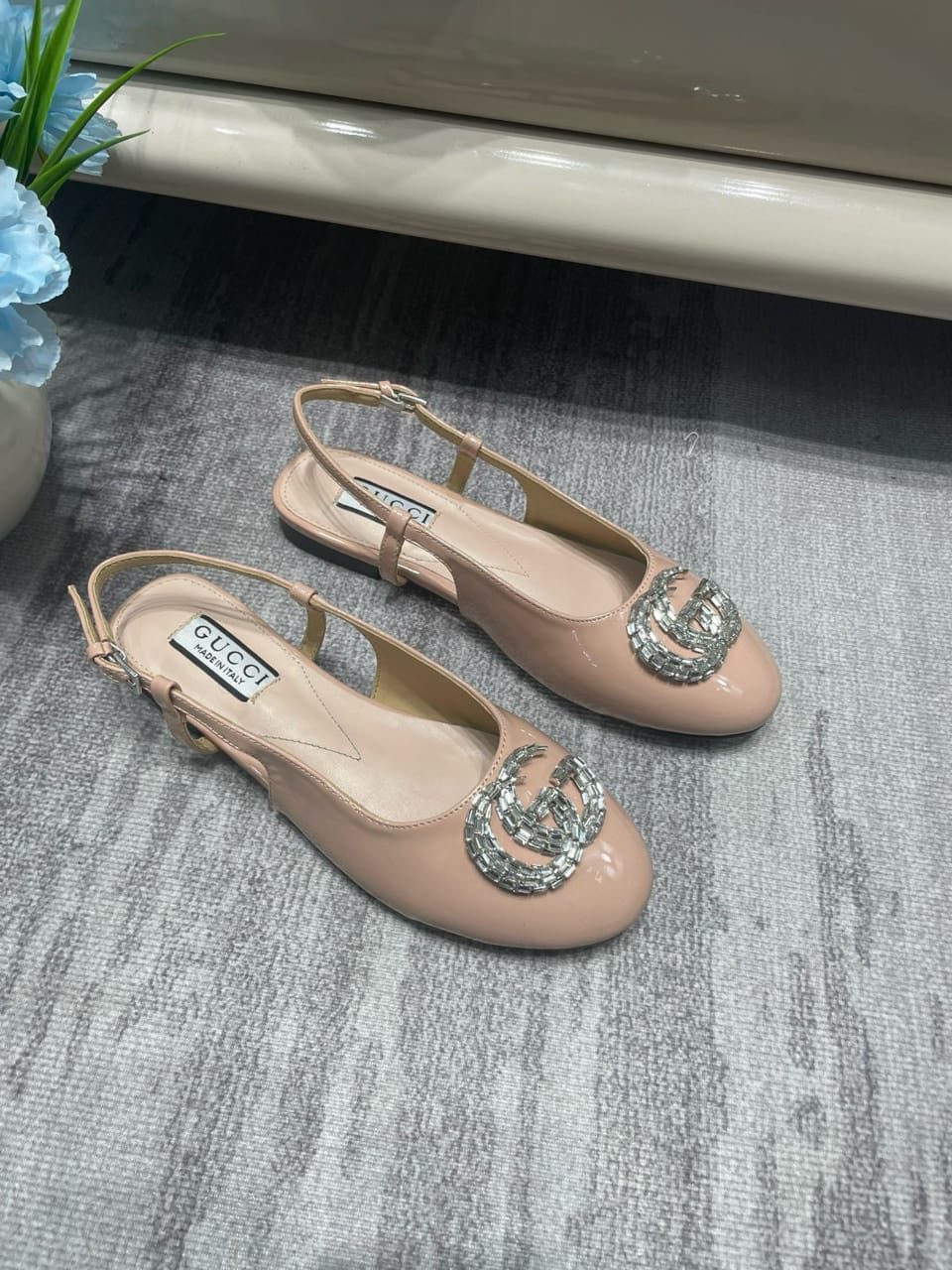 Home Shop Shoes Gucci Shoes Gucci Logo Embellished Slingback Flats Light Pink
