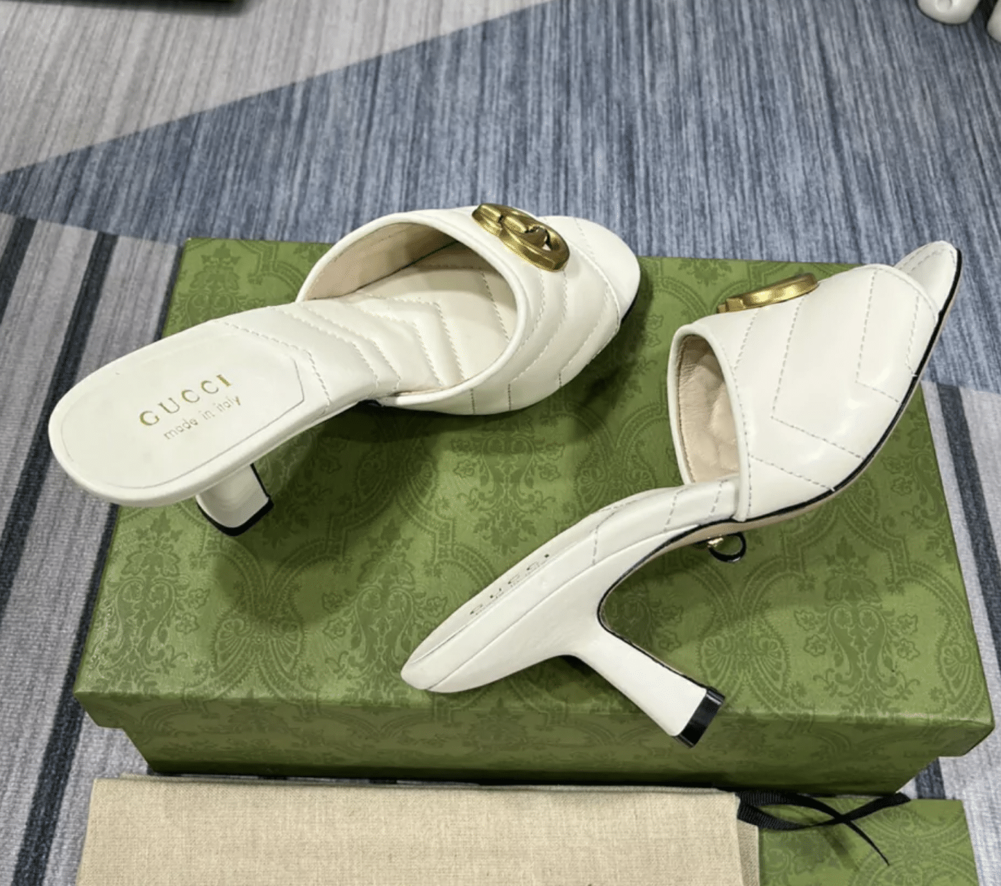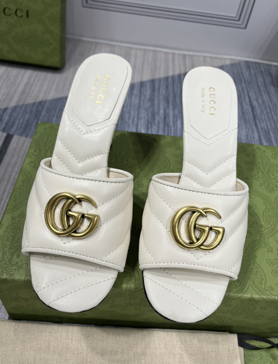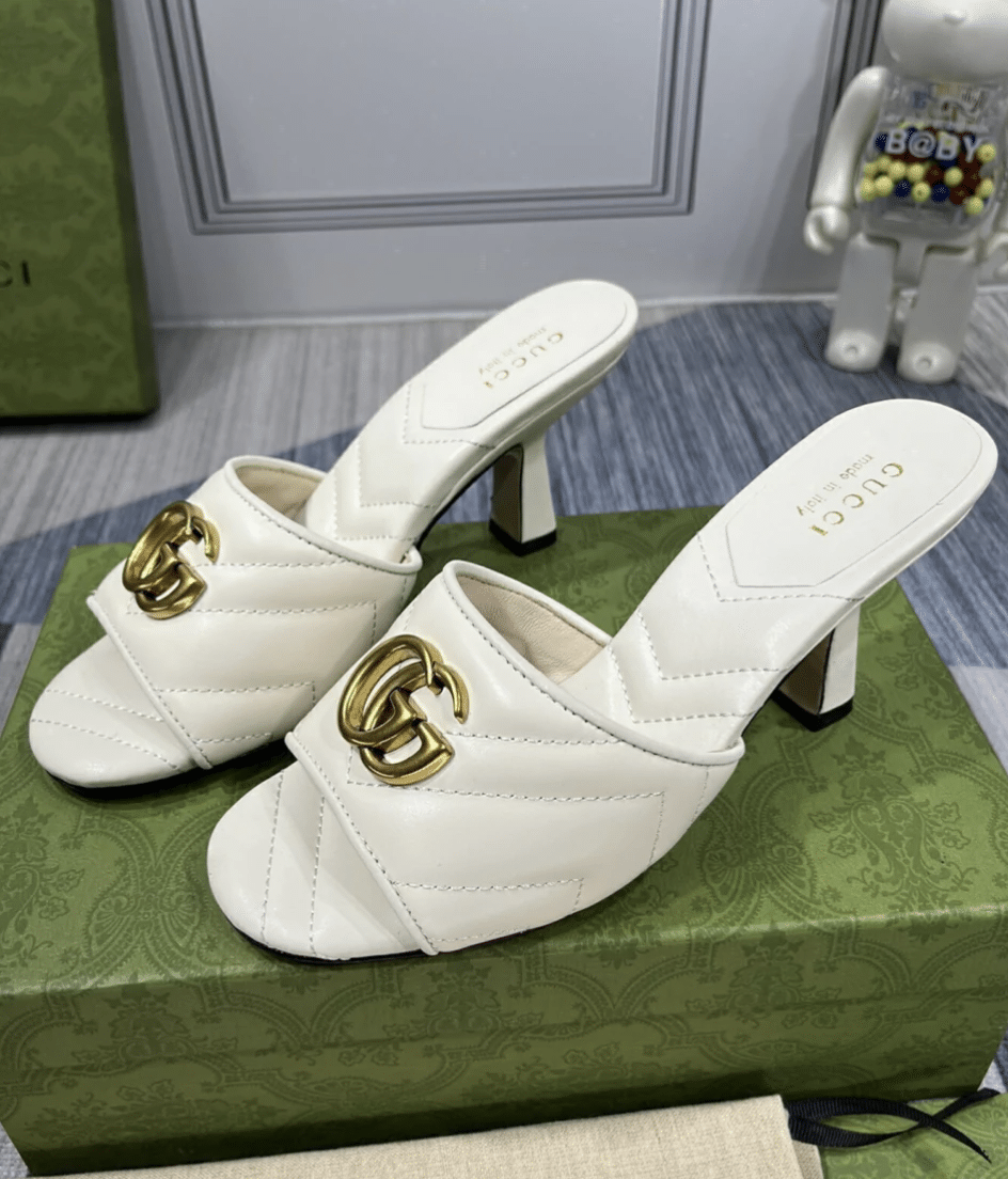 Gucci Marmont Double G Leather Mules White 674839 Bko00 1000