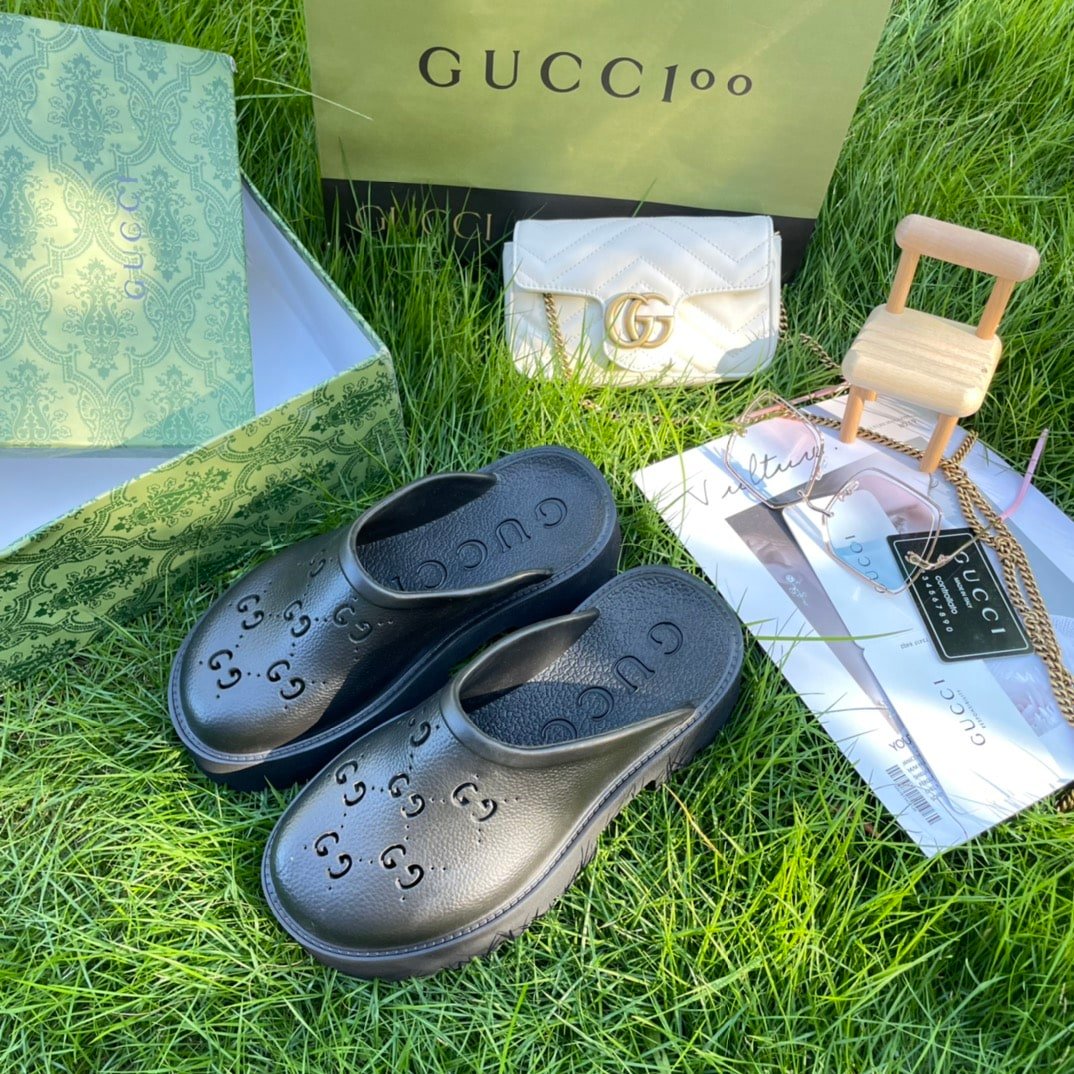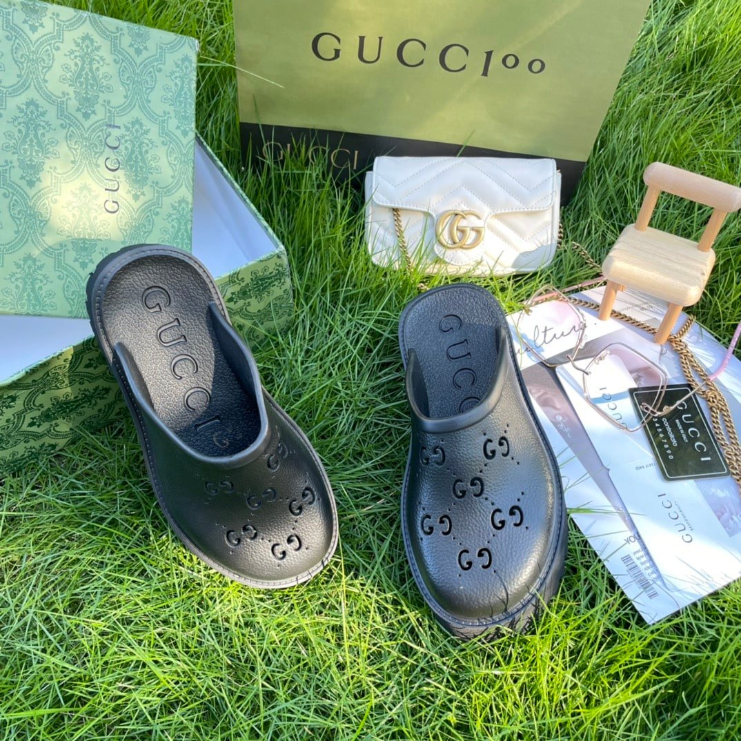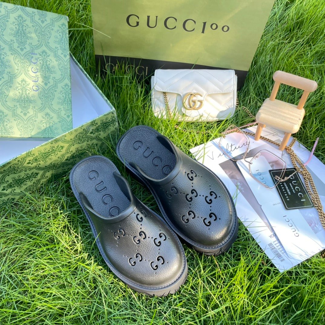 Gucci Men’S Slip On Sandal Black Gg Rubber 655517 Jfb00 1000