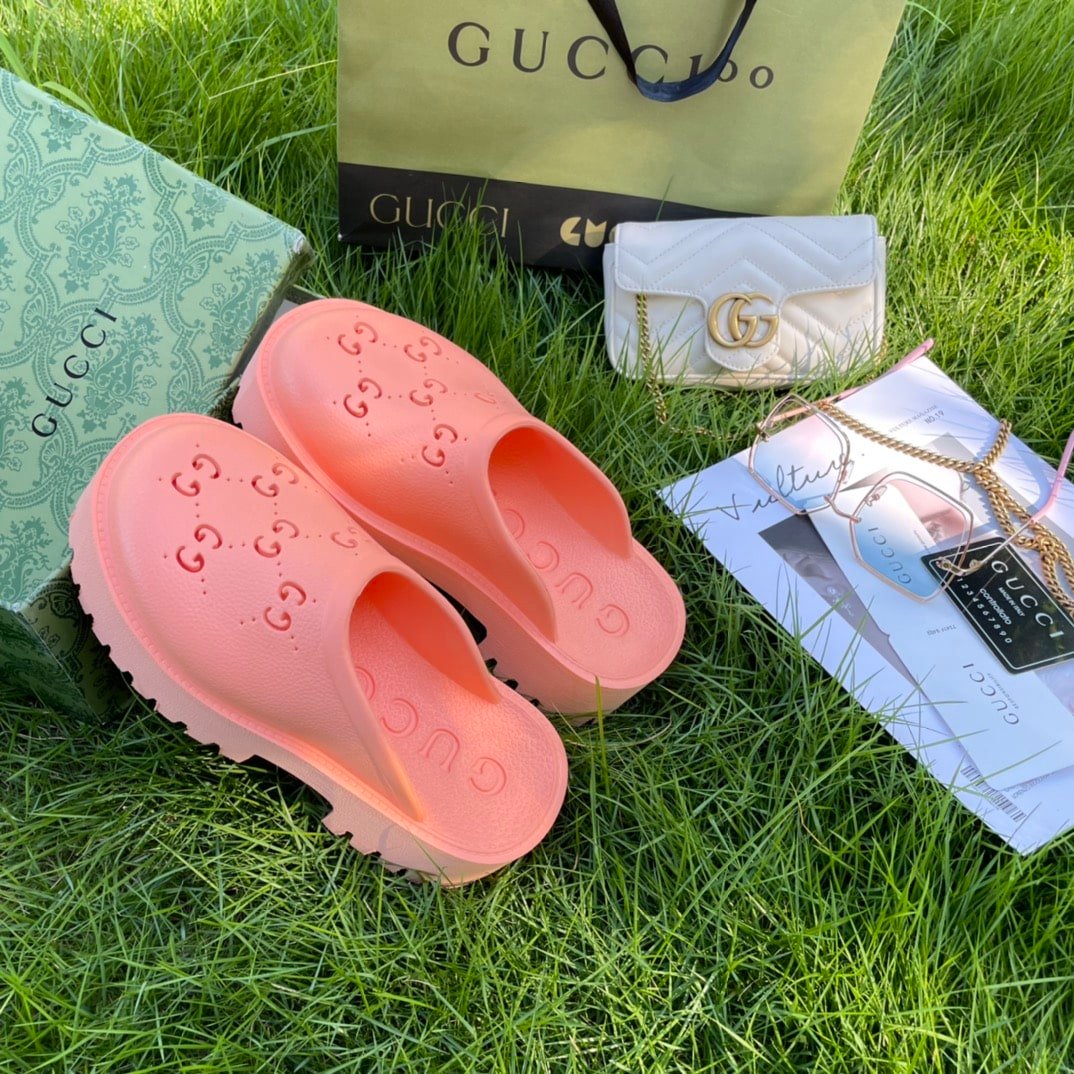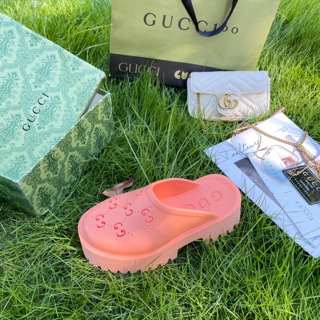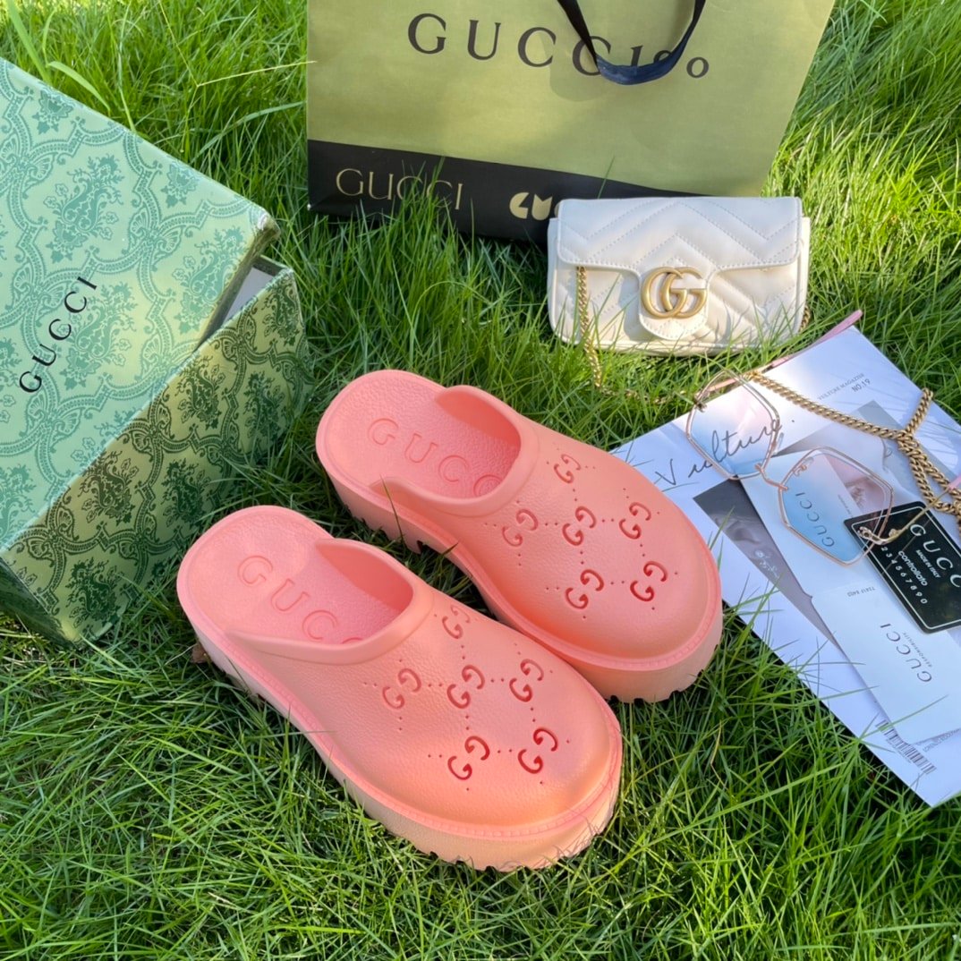 Gucci Men’S Slip On Sandal Pink Gg Rubber