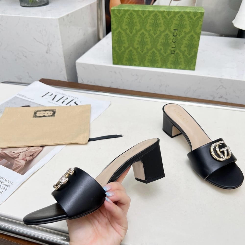 Gucci Gg Crystal Slippers Black