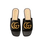 Gucci Gg Leather Heeled Sandal Black