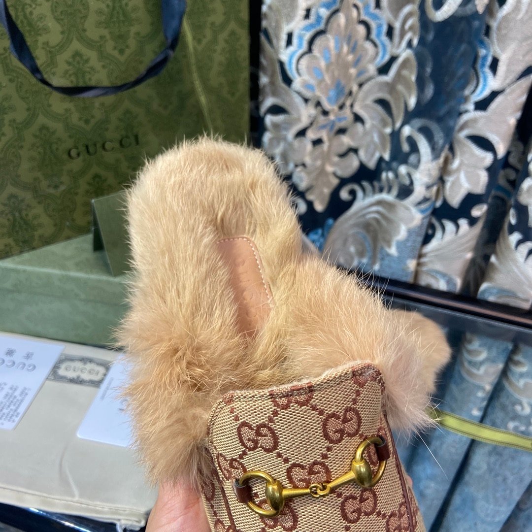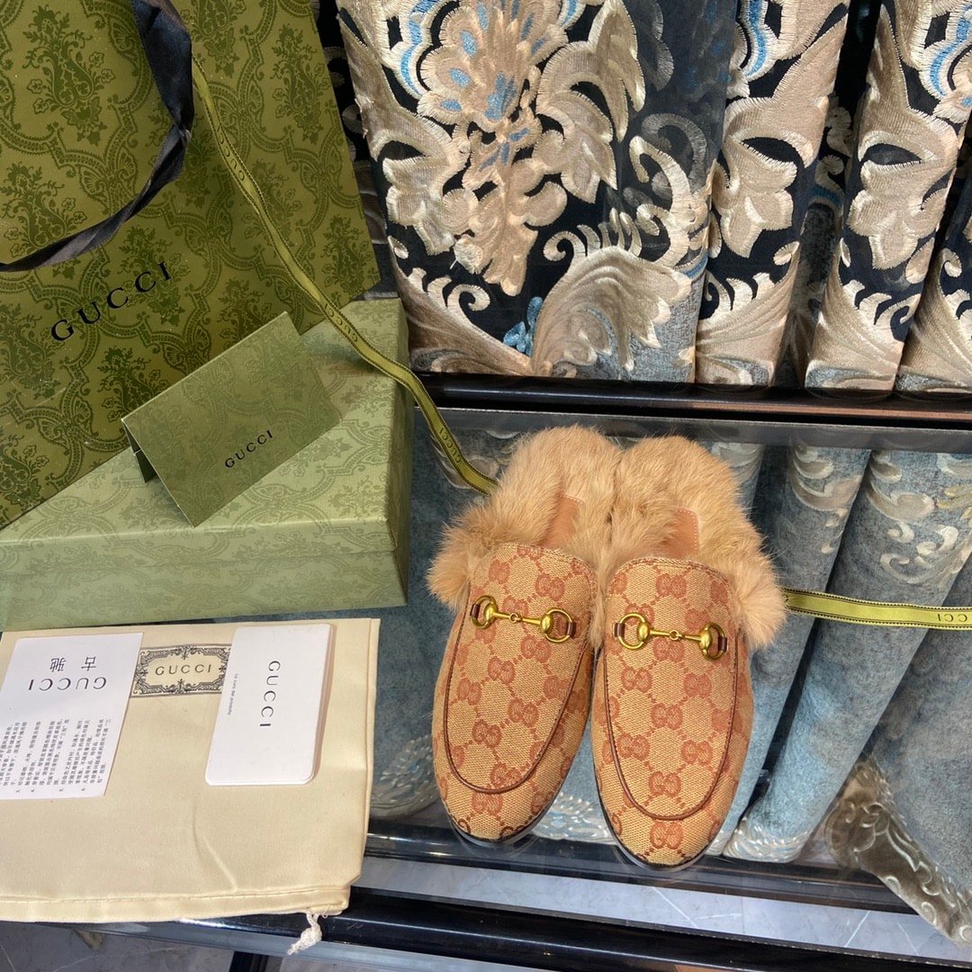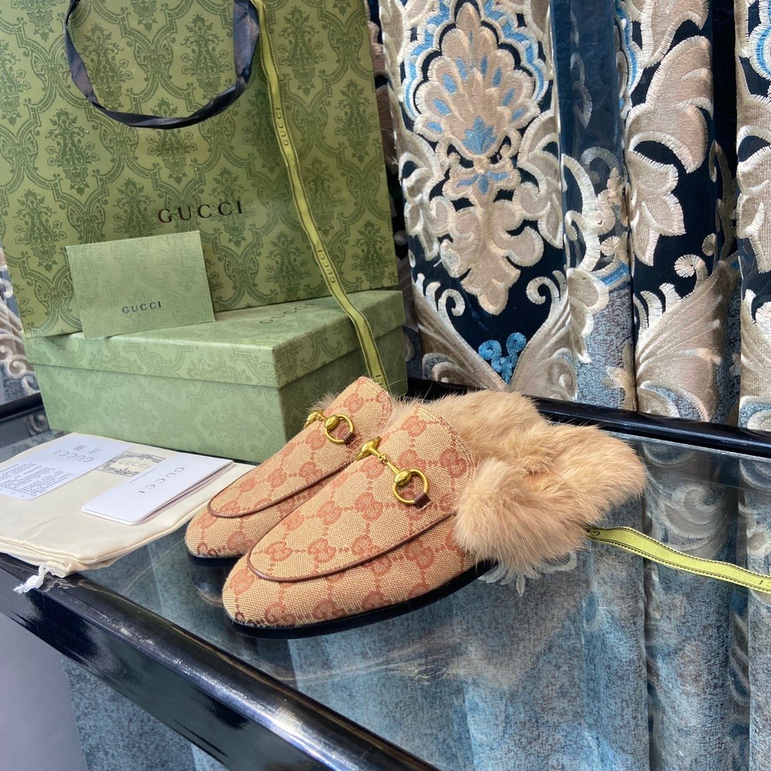 Gucci Princetown Lamb Fur Slippers Rust Natural