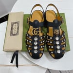 Gucci Rubber Crystal Embellishments Sandals Black