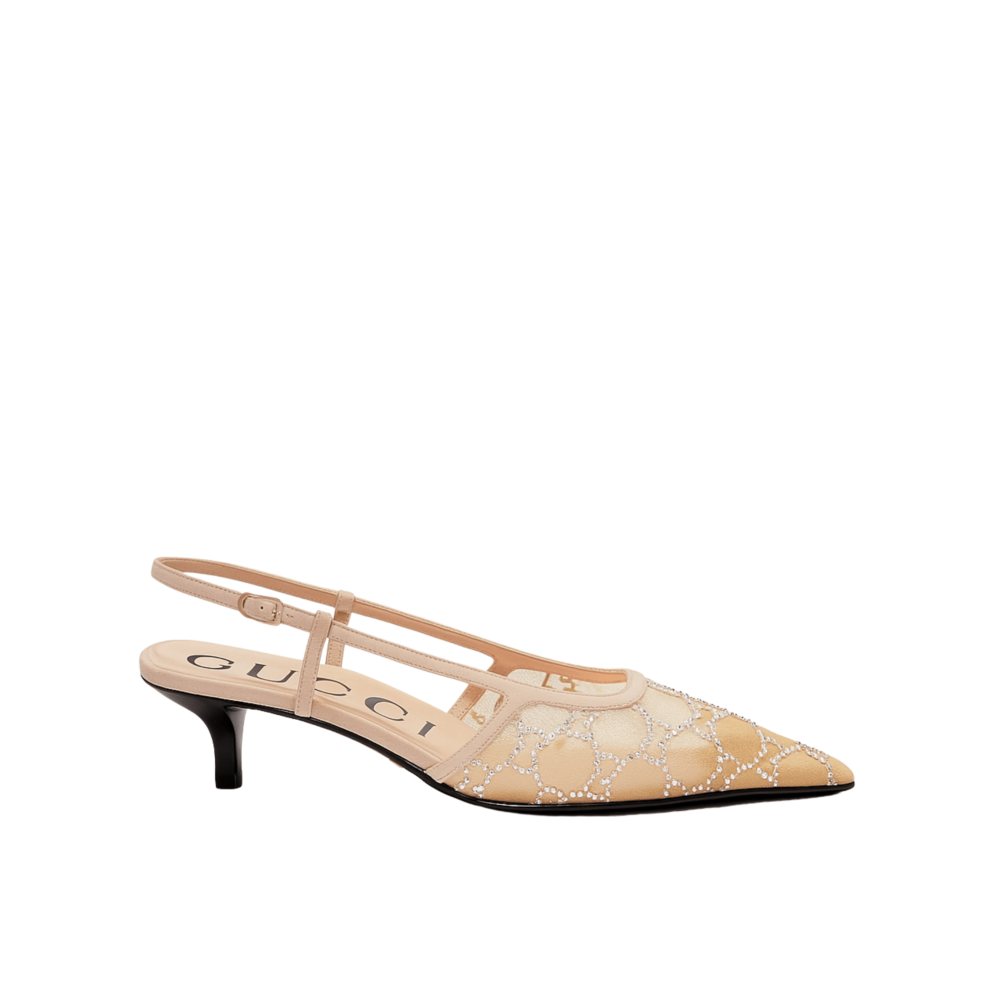 Gucci Slingback Pumps with Decorative Gems – Black Mesh Pointed Toe Heels