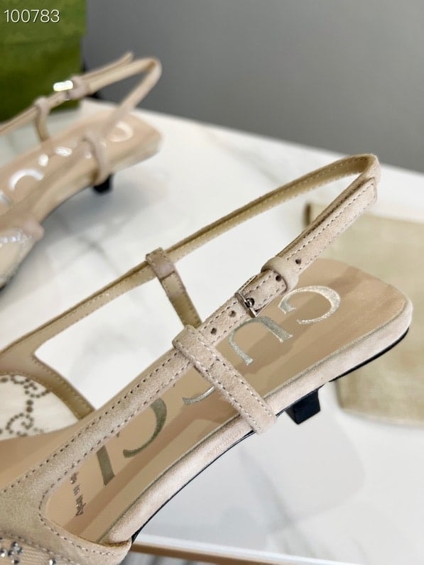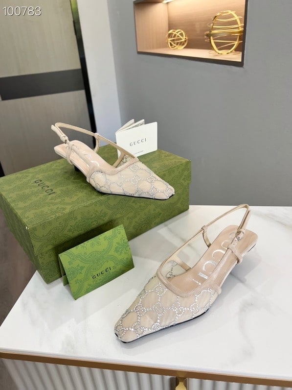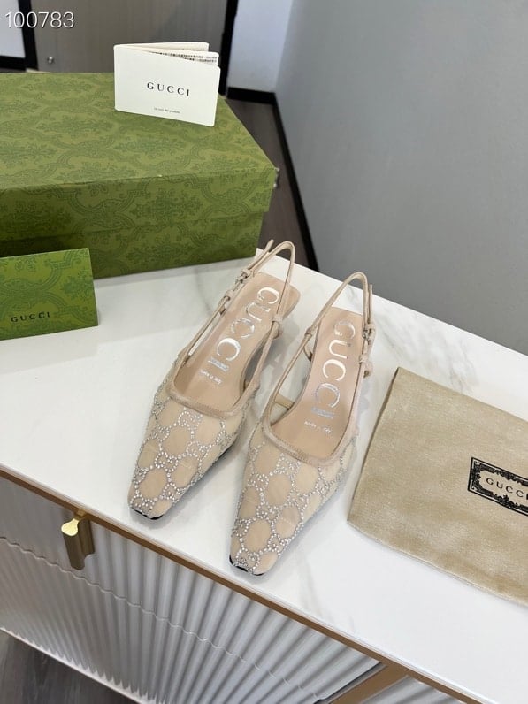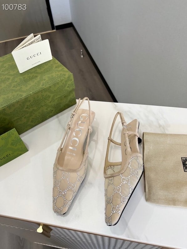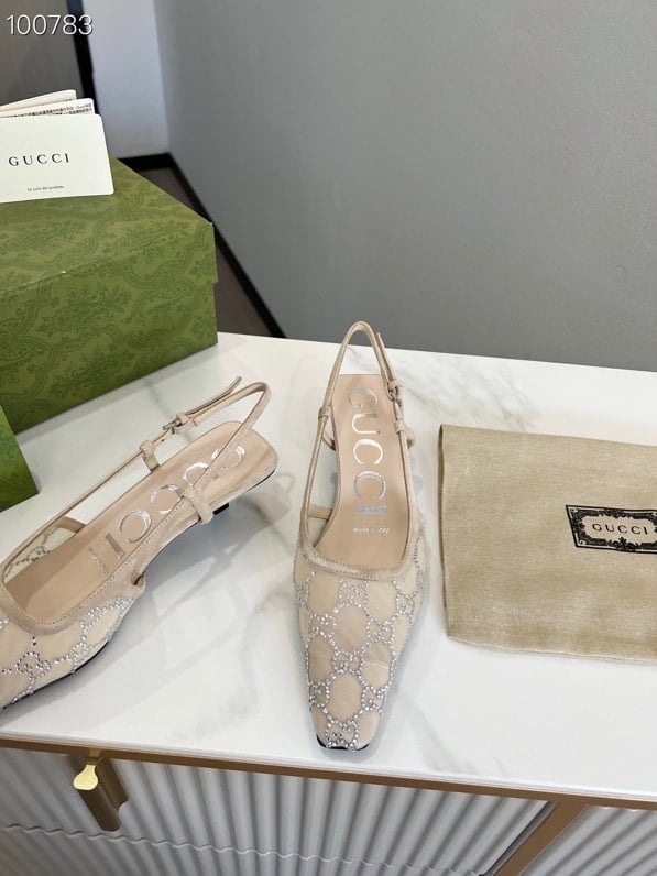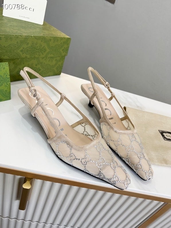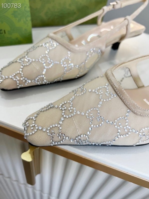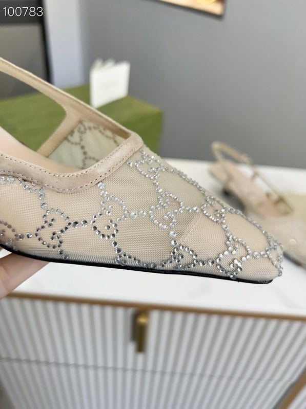 Home Shop Shoes Gucci Shoes Gucci Slingback Pumps with Decorative Gems – Black Mesh Pointed Toe Heels