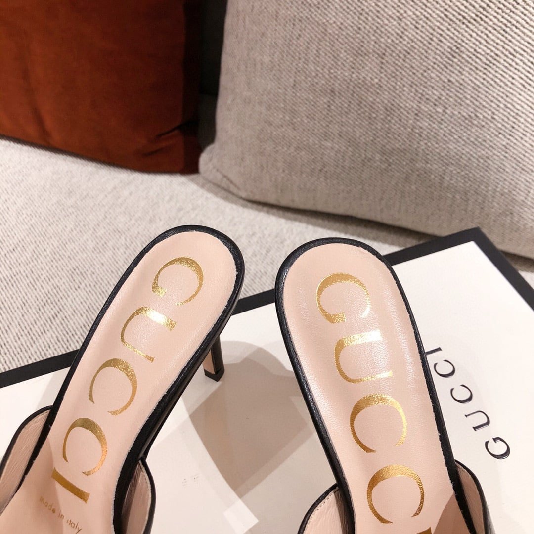 Gucci Gg Leather Heeled Sandal Black