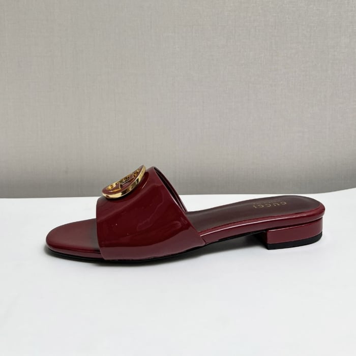 Gucci Women Round Interlocking G Sandal In Burgundy 820860 Bnc00 6207