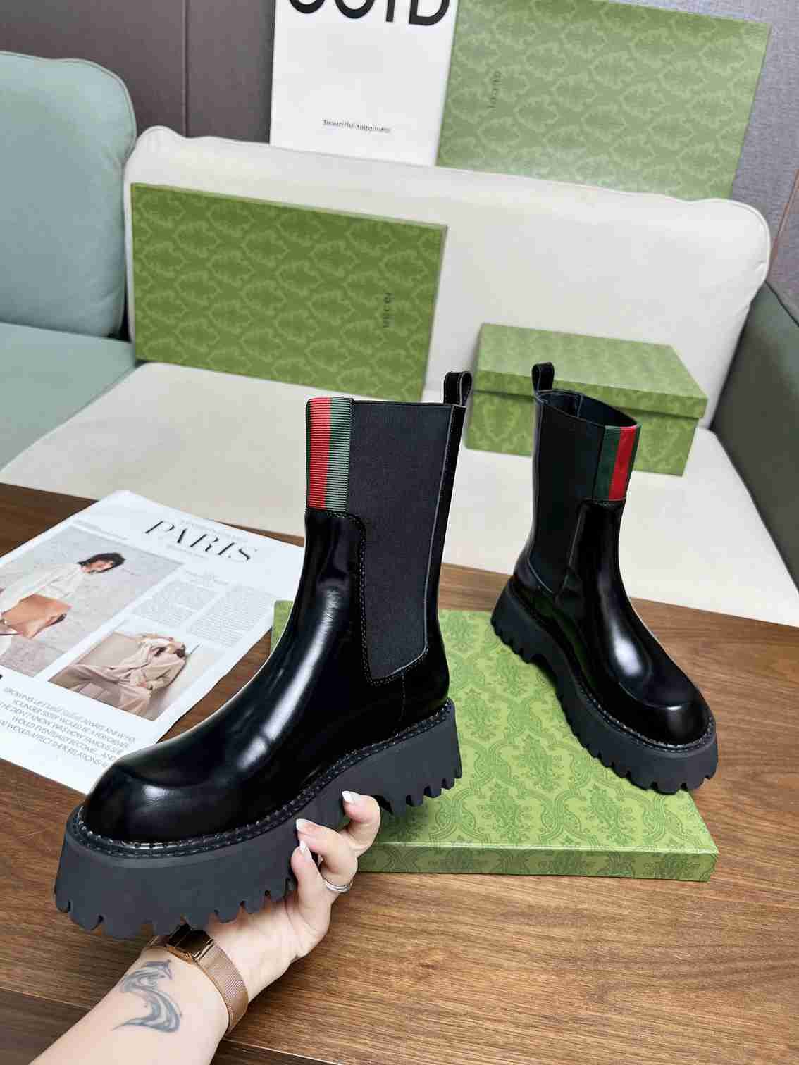 Home Shop Shoes Gucci Shoes Gucci Women’s Boot With Web Anand Leather Black