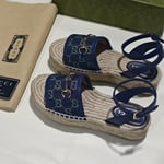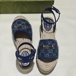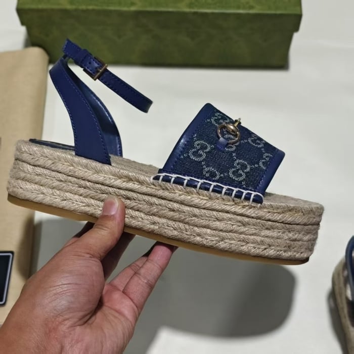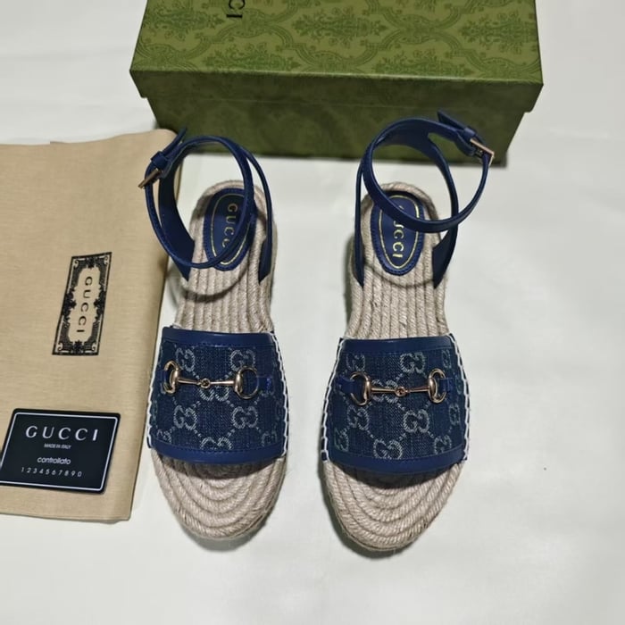 Gucci Women’S Flatform Espadrille With Horsebit Dark Blue 817228 Fad9U 4246