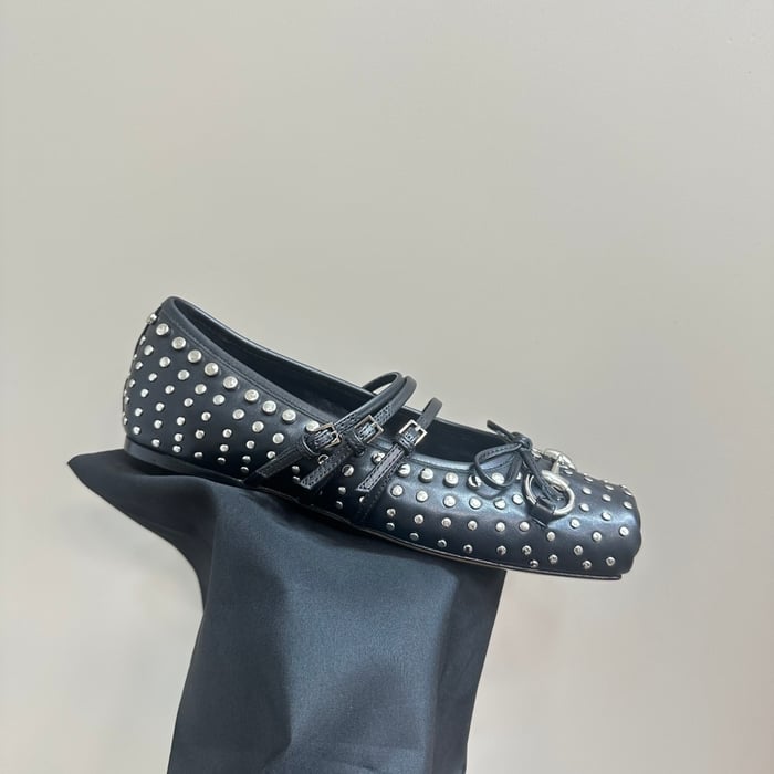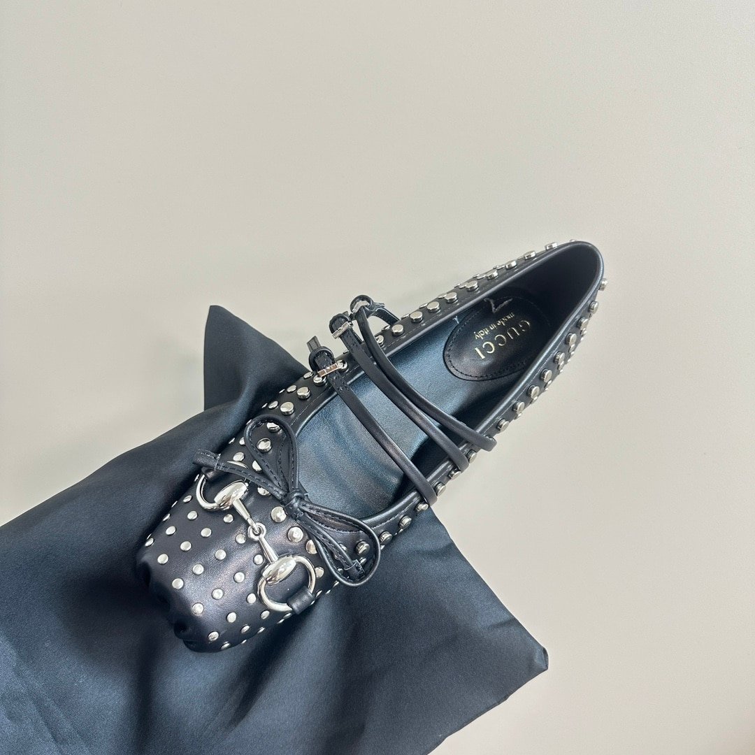 Gucci Women’S Horsebit Ballet Flat Allover Studs Black 814317 Aaeev 1050