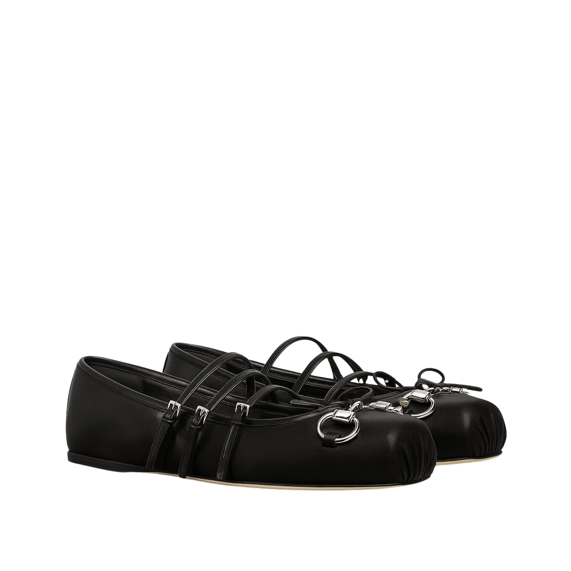 Gucci Women'S Horsebit Ballet Flat Satin Black