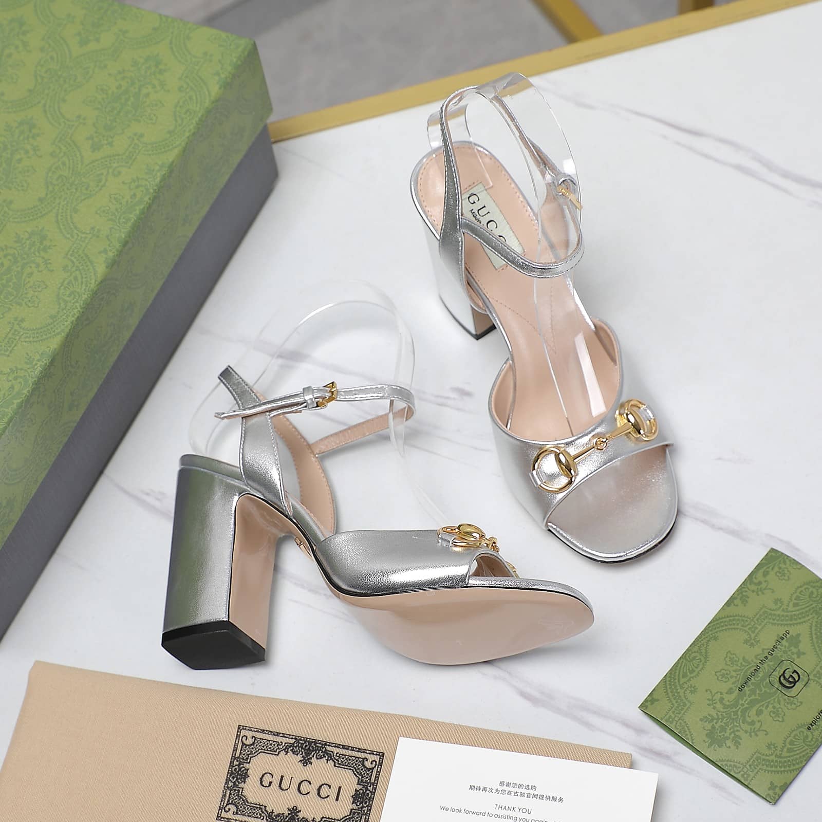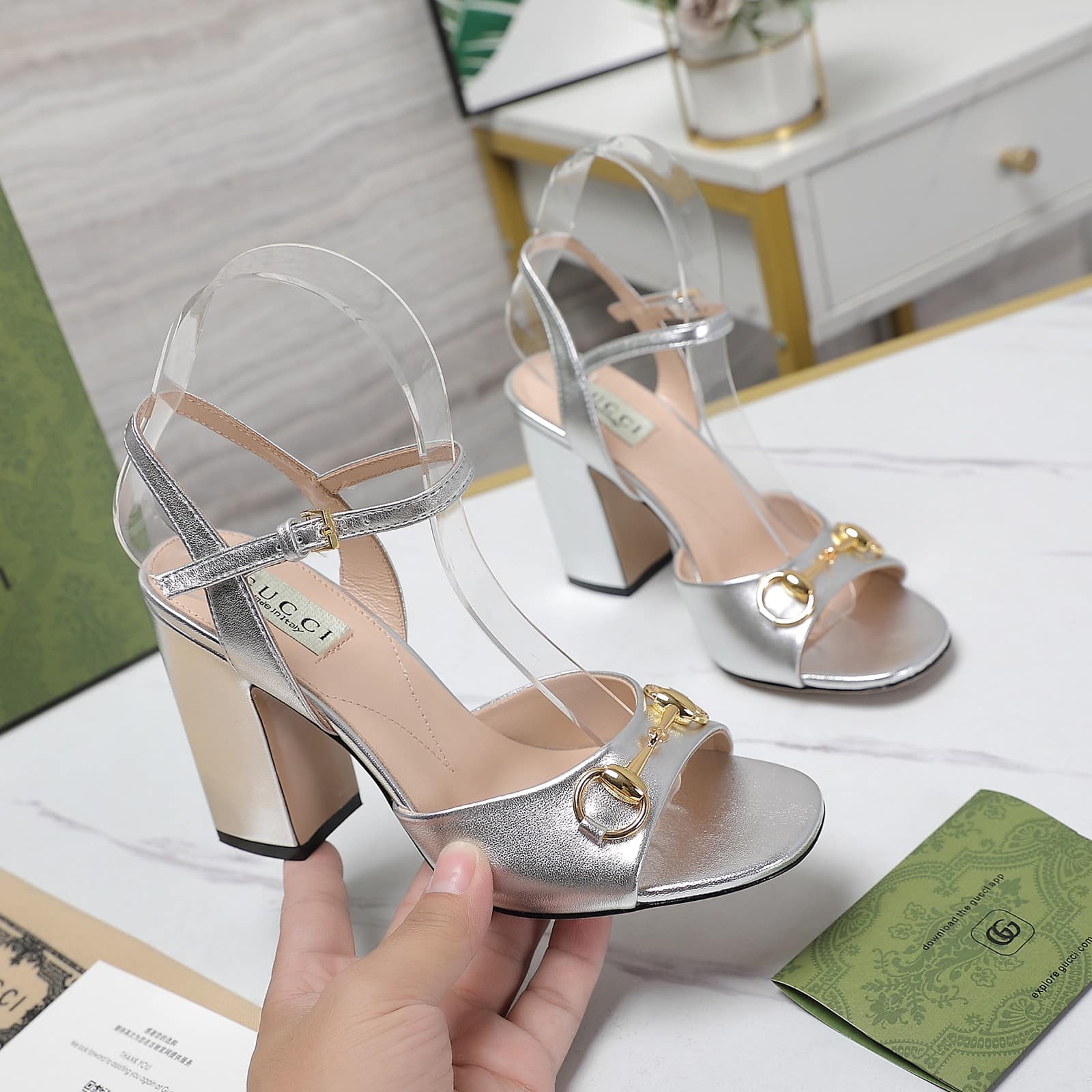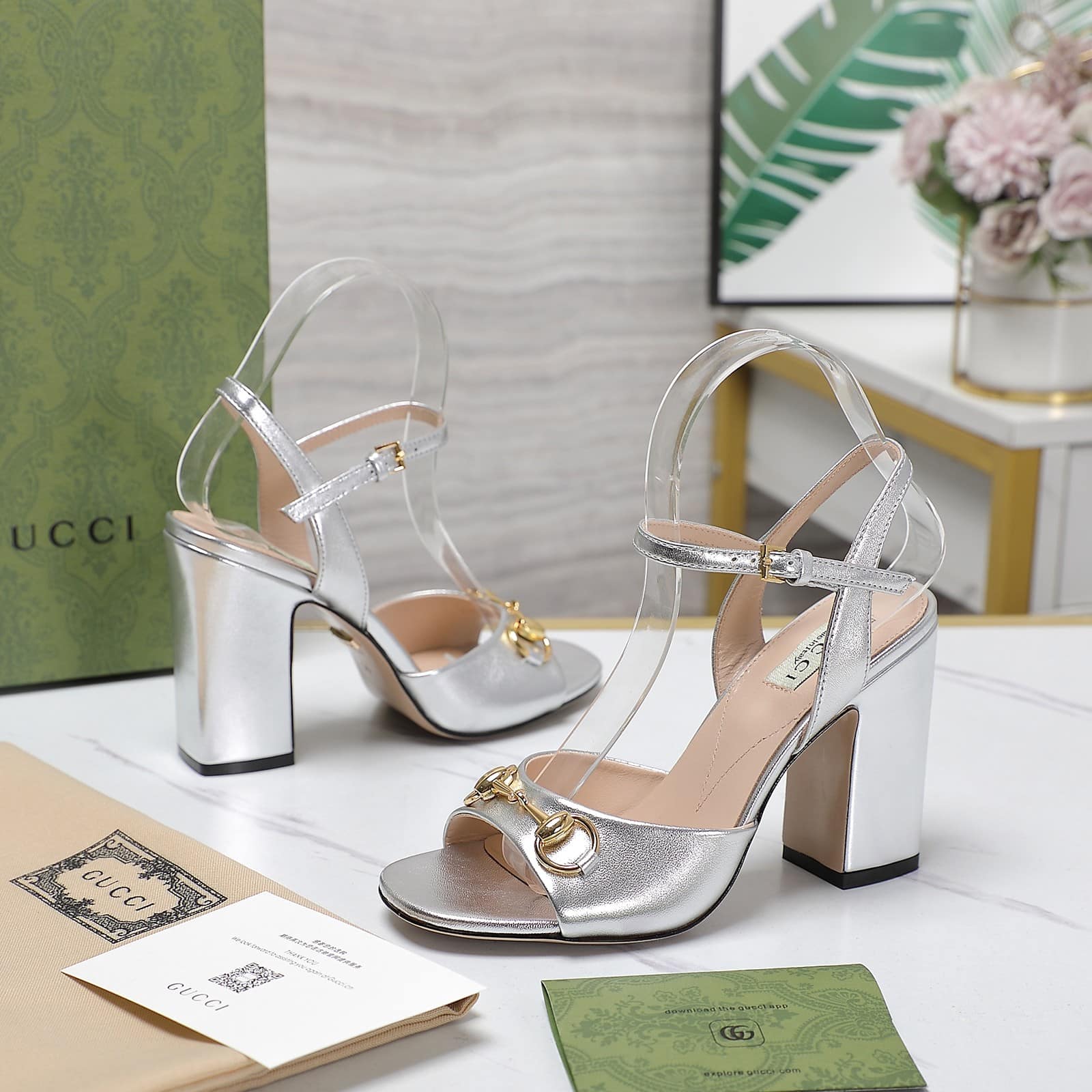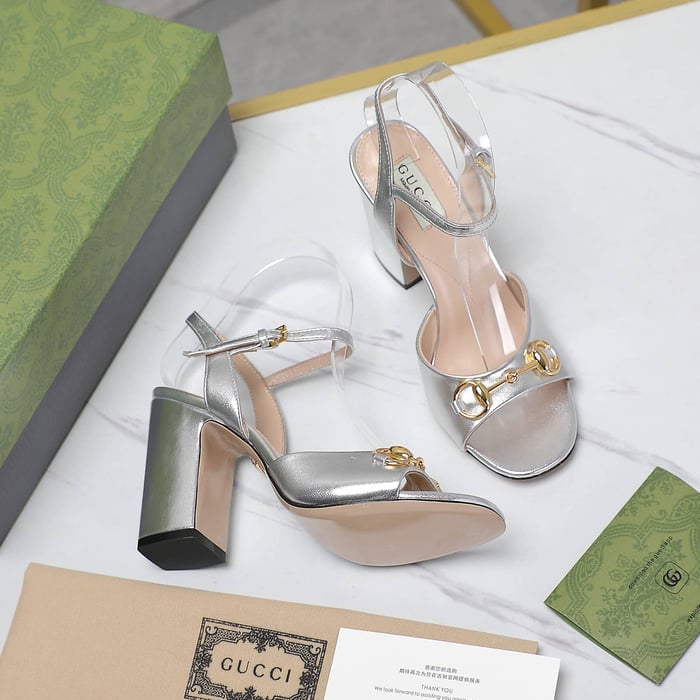Gucci Women’S Horsebit High Heel Sandal Silver
