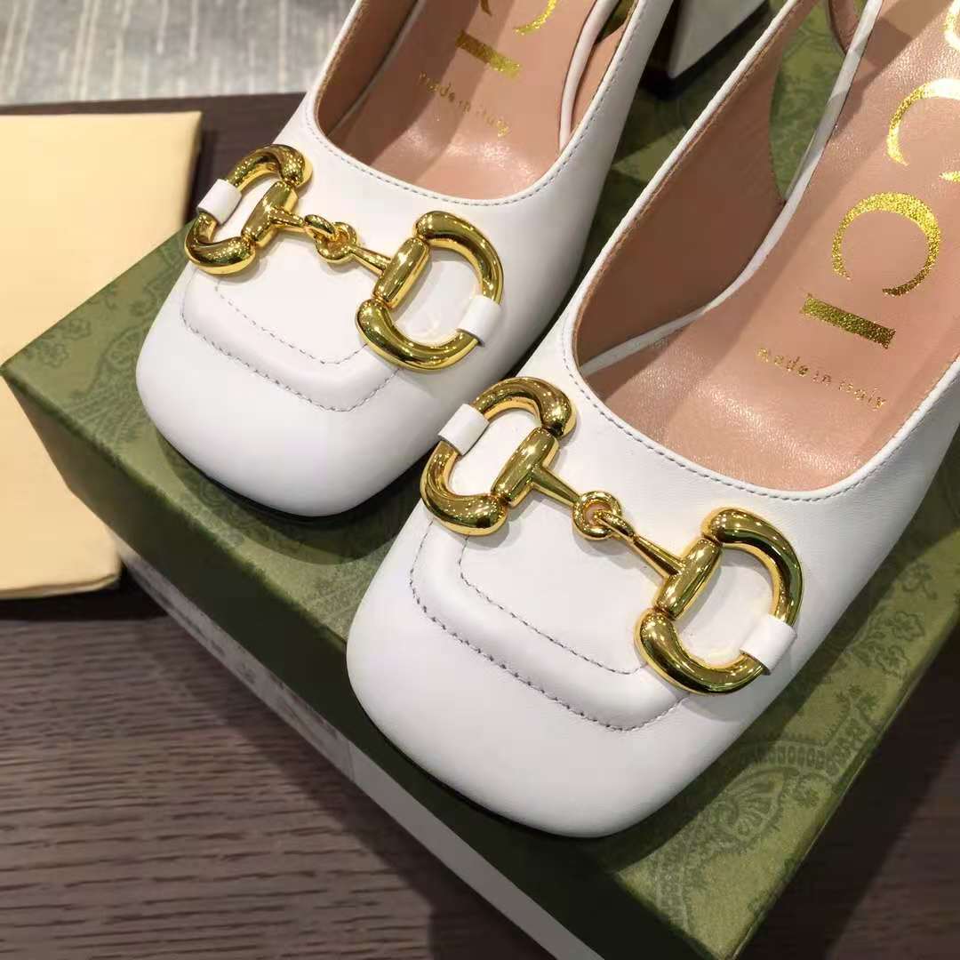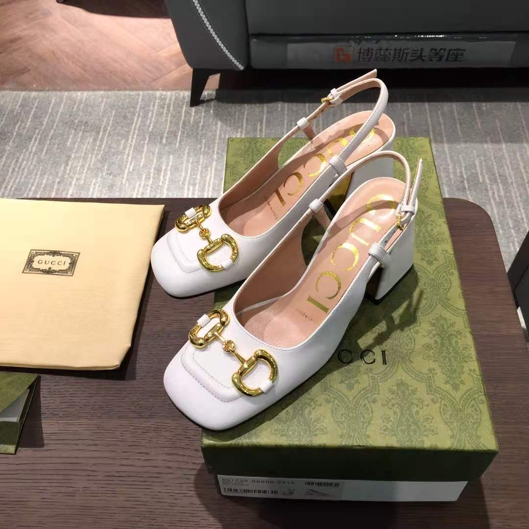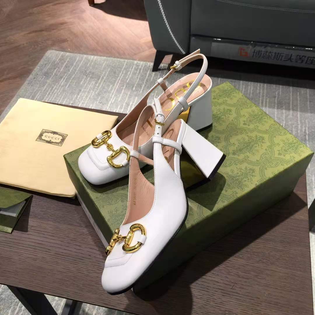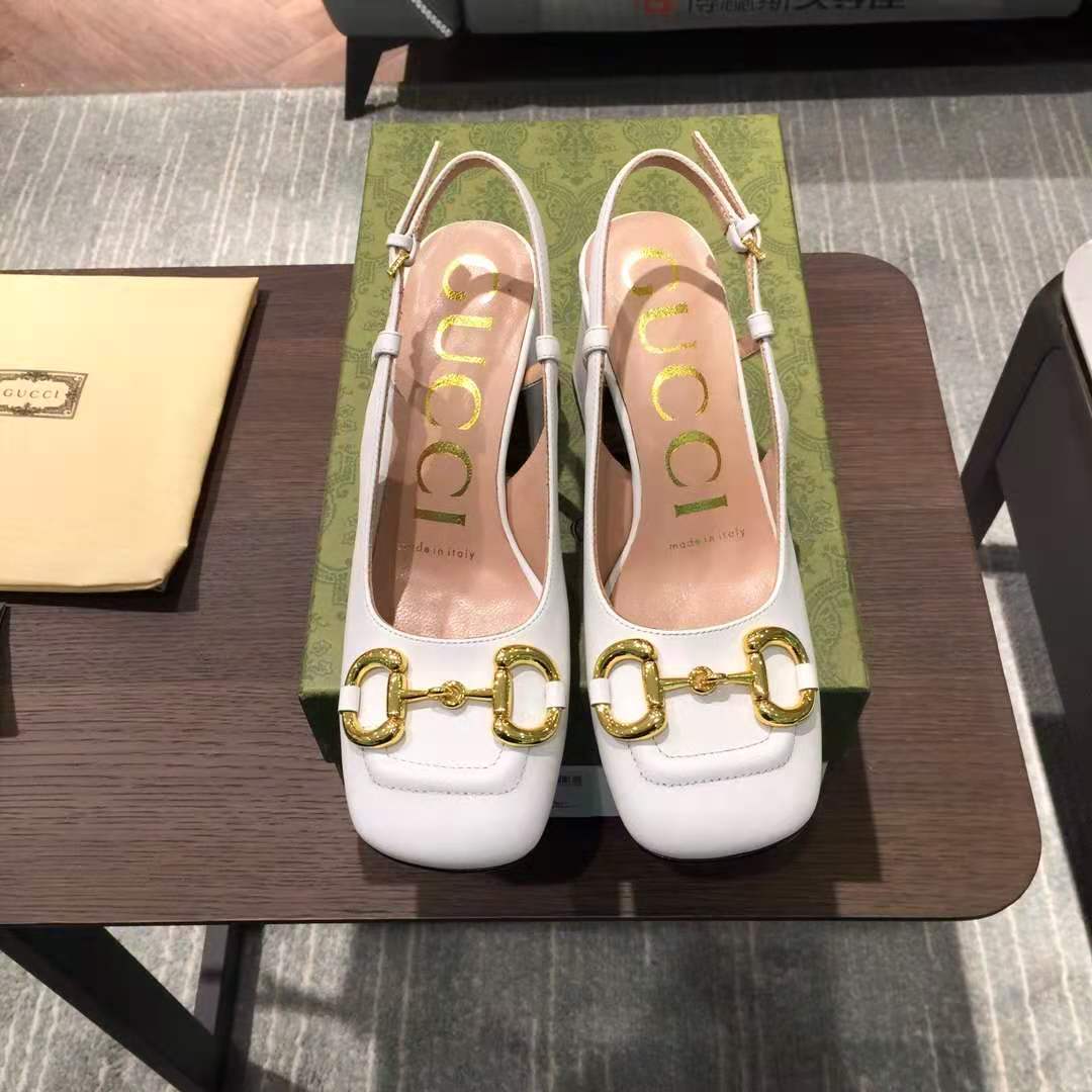 Home Shop Shoes Gucci Shoes Gucci Women?S Mid Heel Slingback With Horsebit White ?643892 C9D00 9022