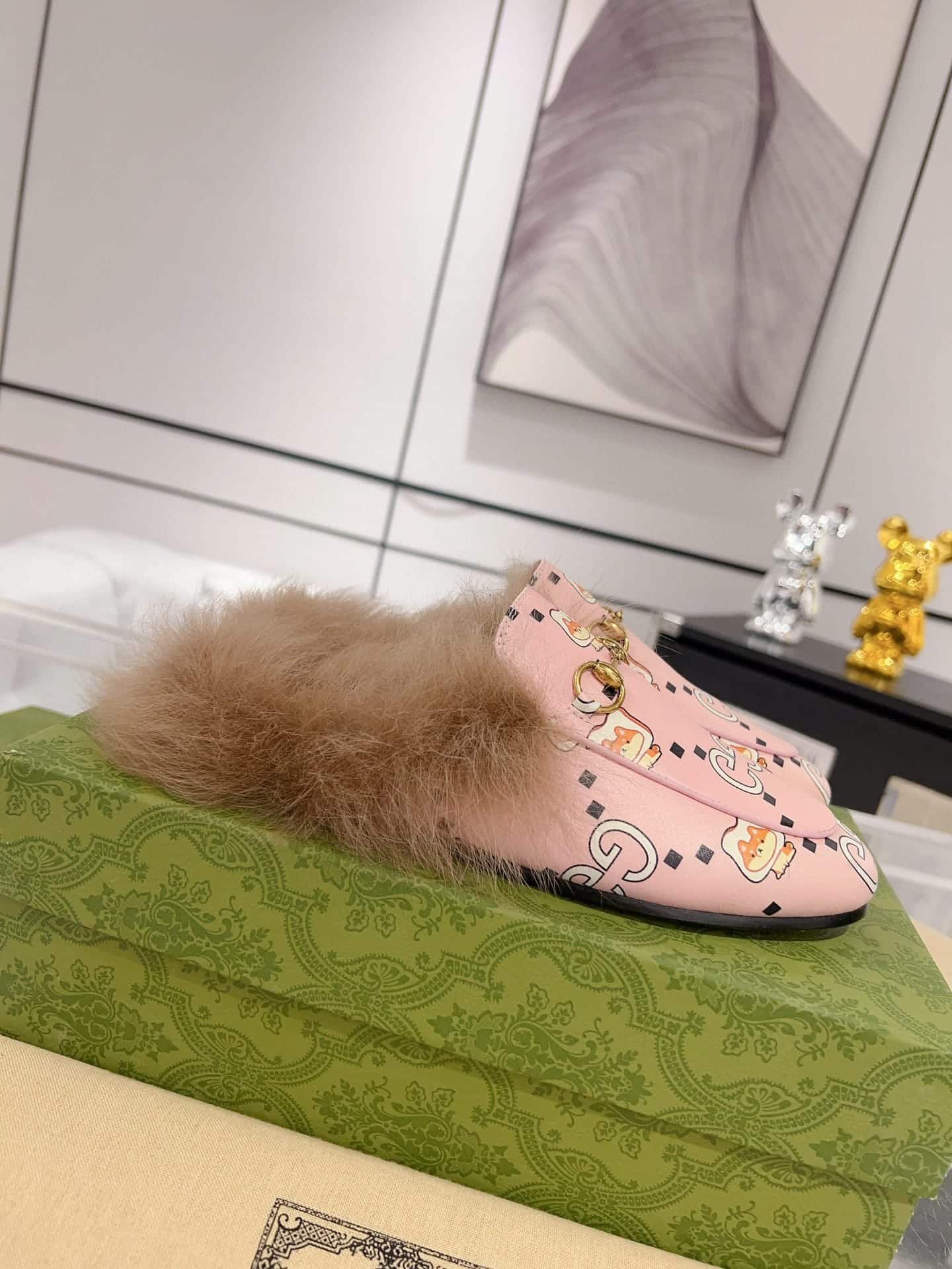 Home Shop Shoes Gucci Shoes Gucci Womens Pink X Pikarar Kawaii Leather Fur Backless Loafers