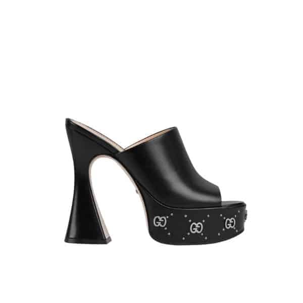 Gucci Gg Leather Heeled Sandal Black