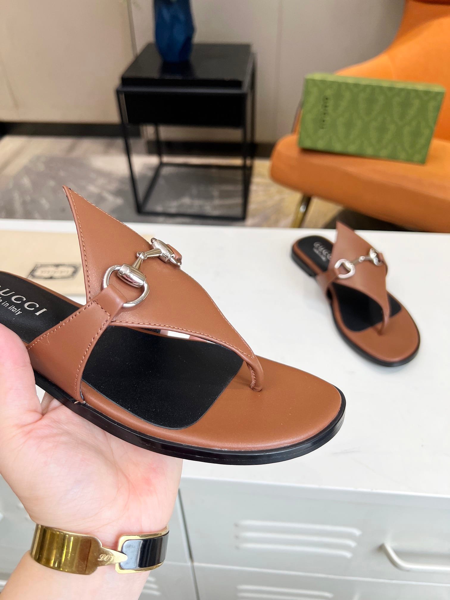 Gucci Women’S Thong Sandal With Horsebit Brown