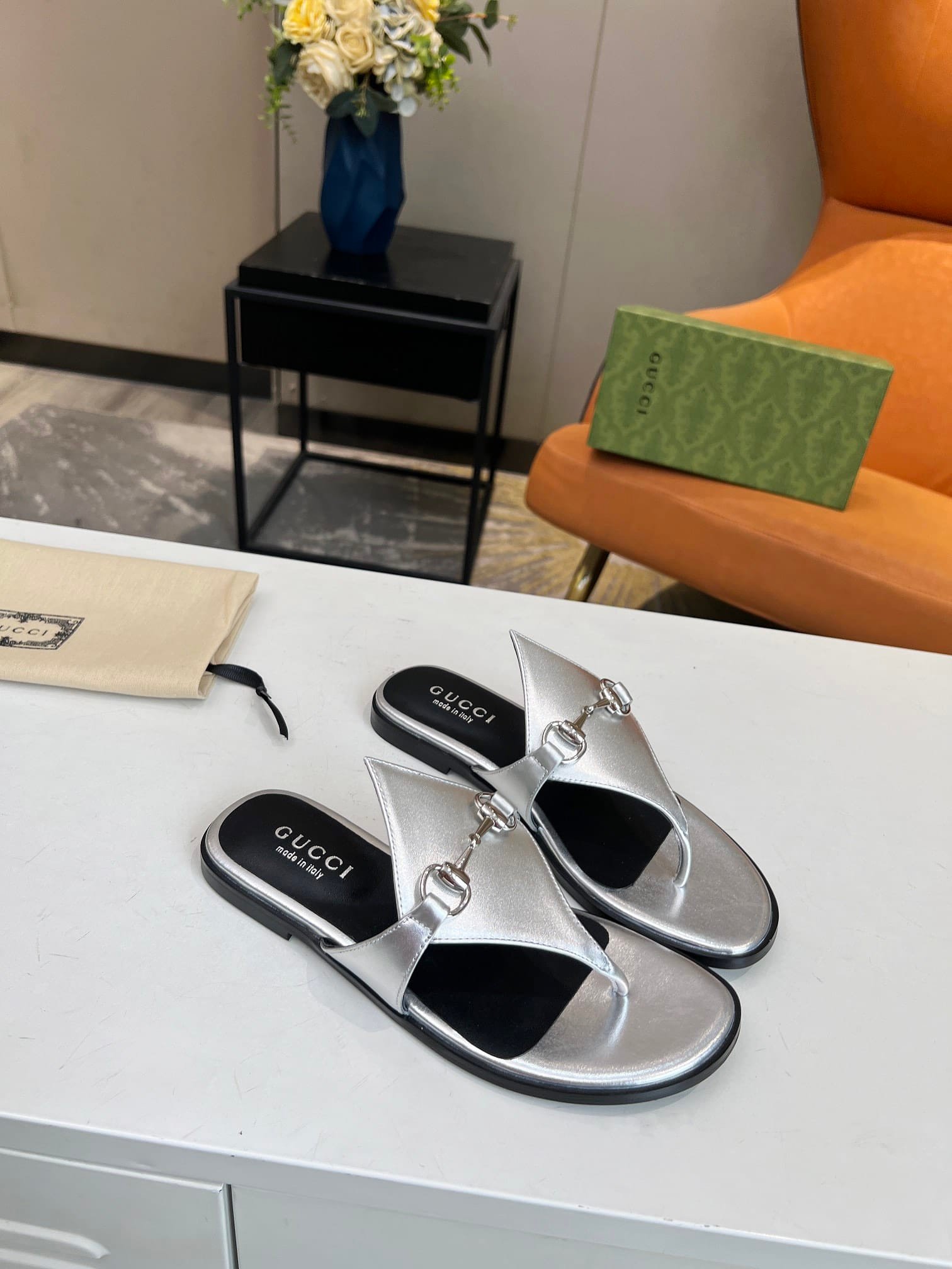 Gucci Women’S Thong Sandal With Horsebit Silver