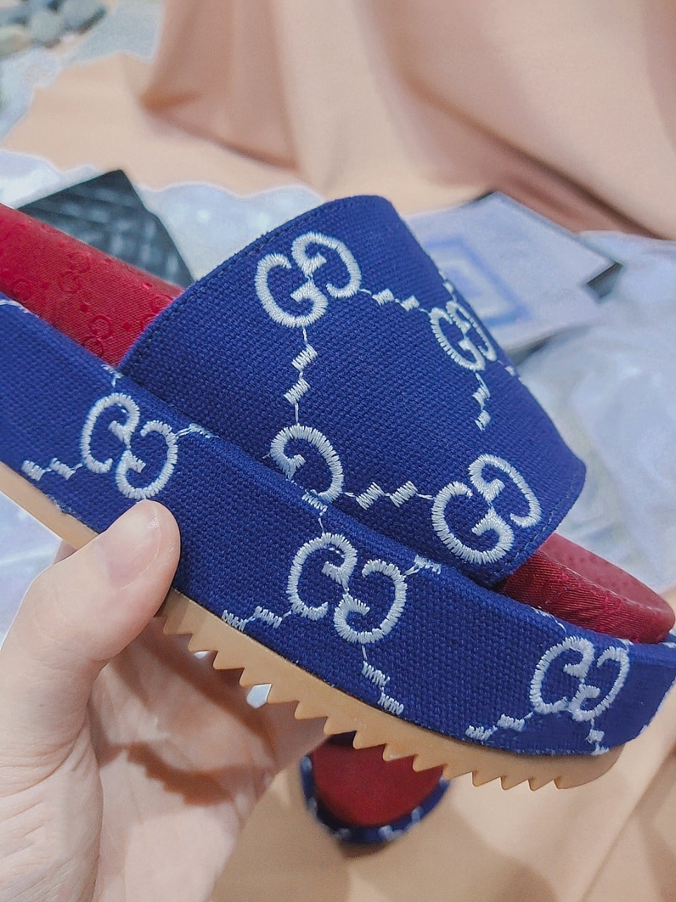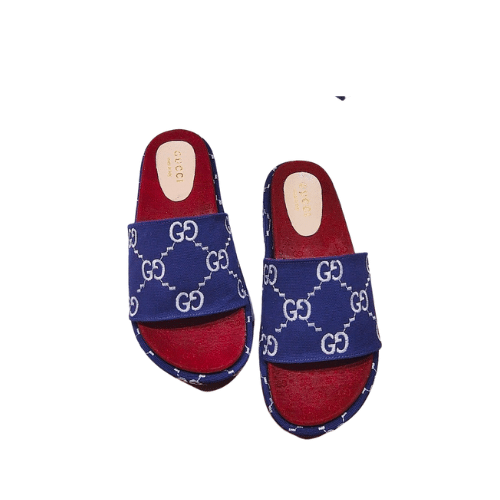 Gucci Women?S With Gg Pattern Slide Sandal Dark Blue