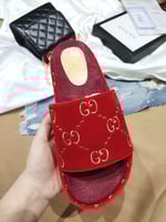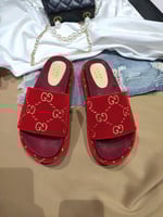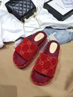 Gucci Women?S With Gg Pattern Slide Sandal Red