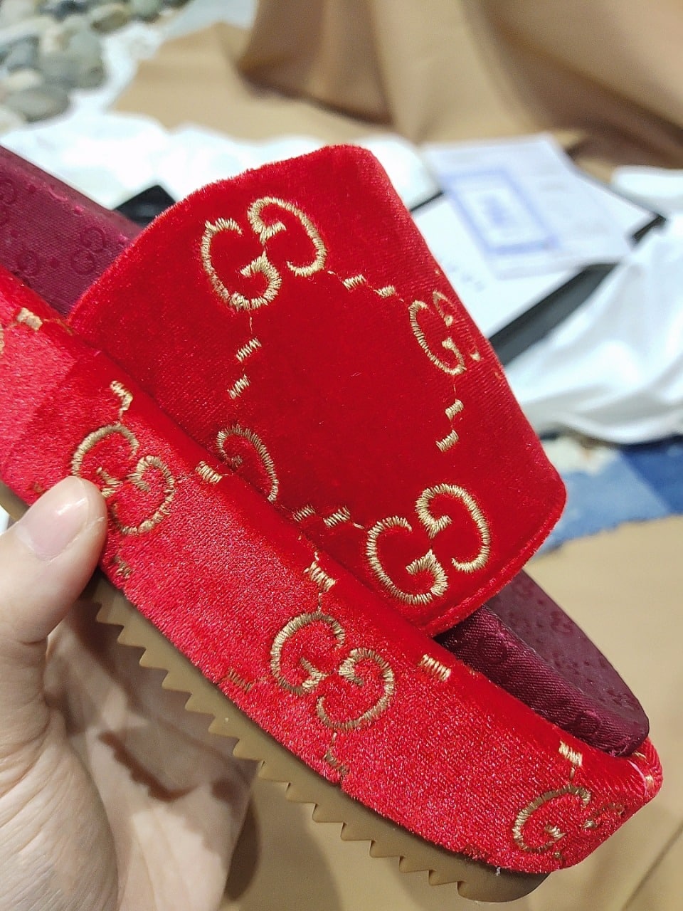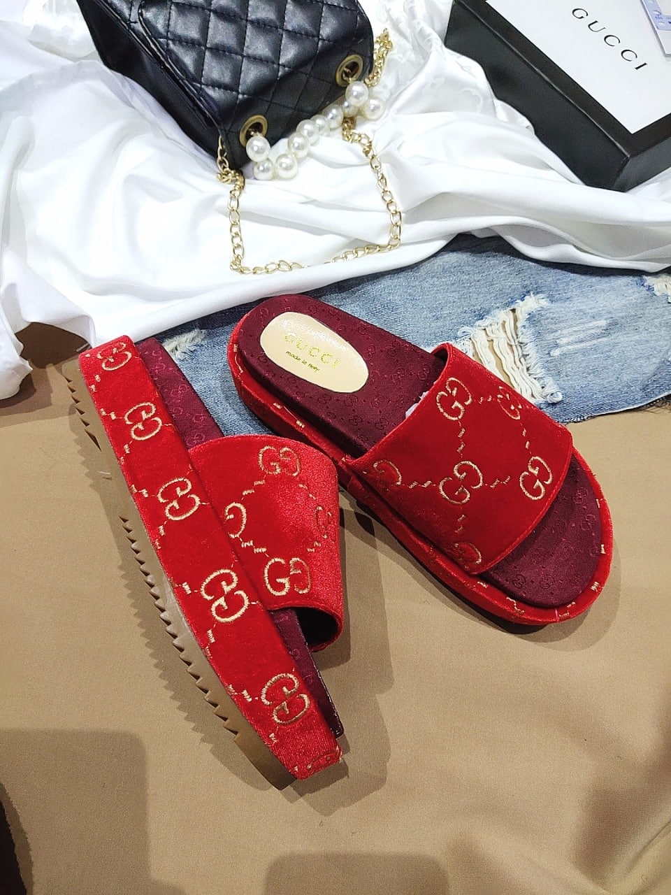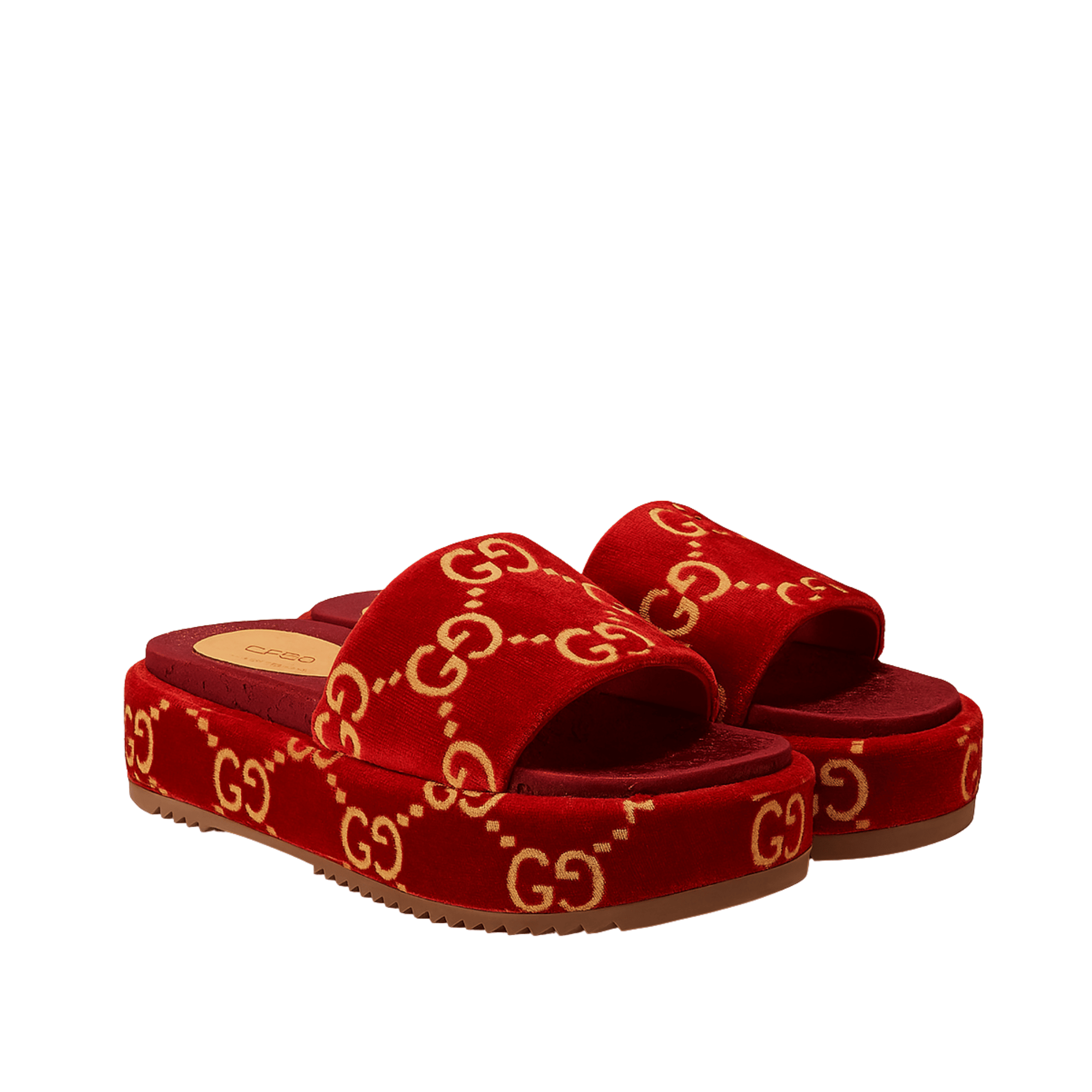 Home Shop Shoes Gucci Shoes Gucci Women?S With Gg Pattern Slide Sandal Red