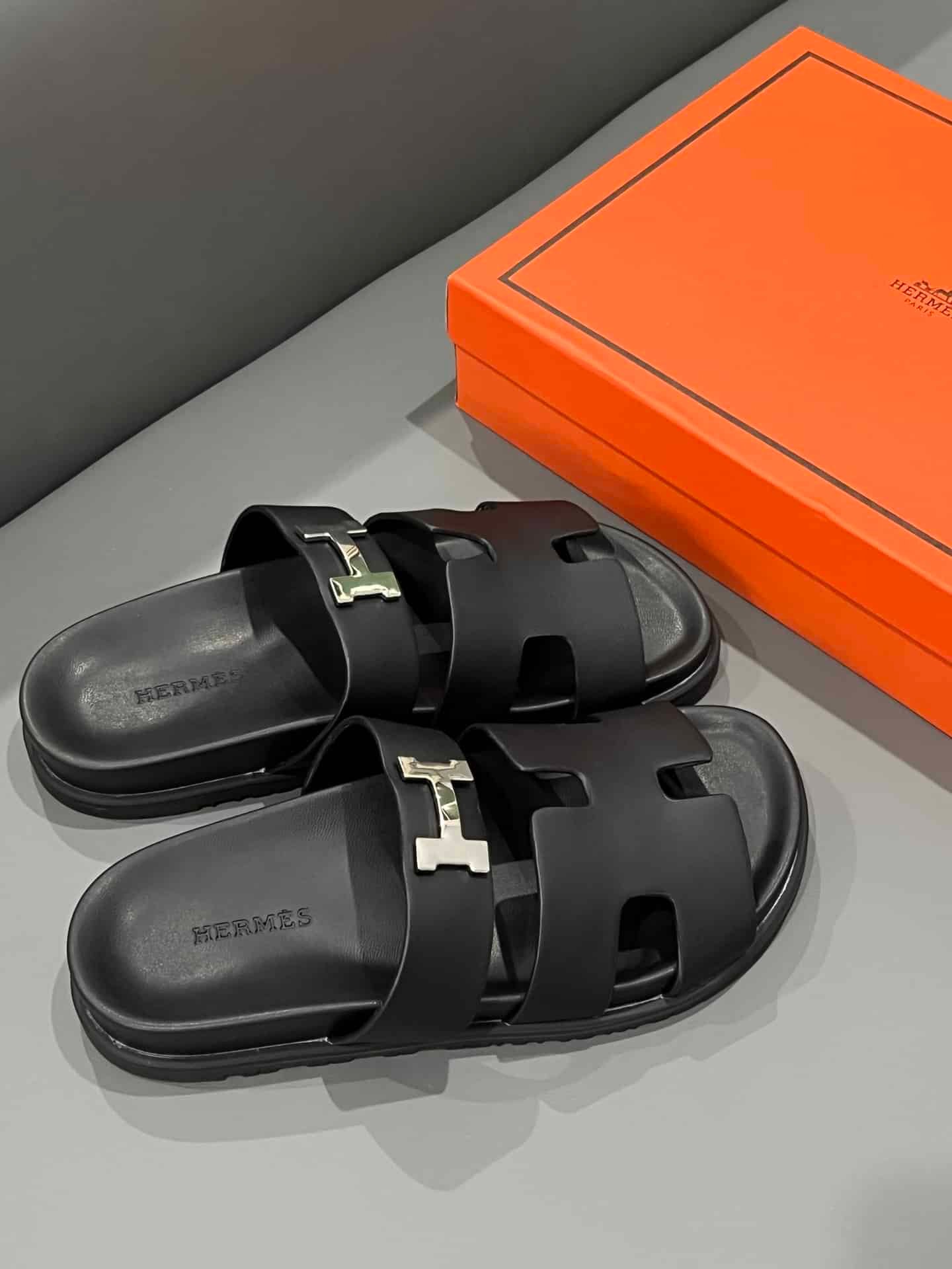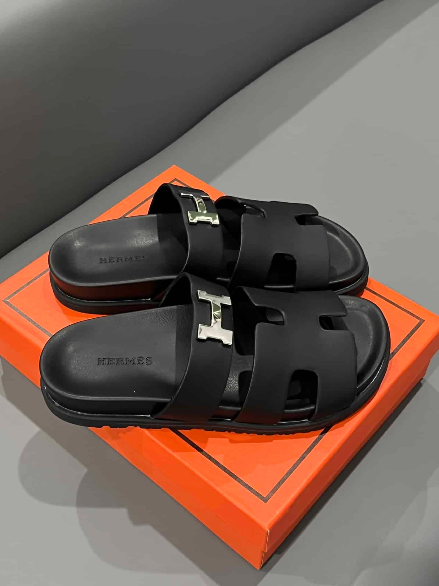 Hermes Chypre Sandal H Logo Silver Hardware Black