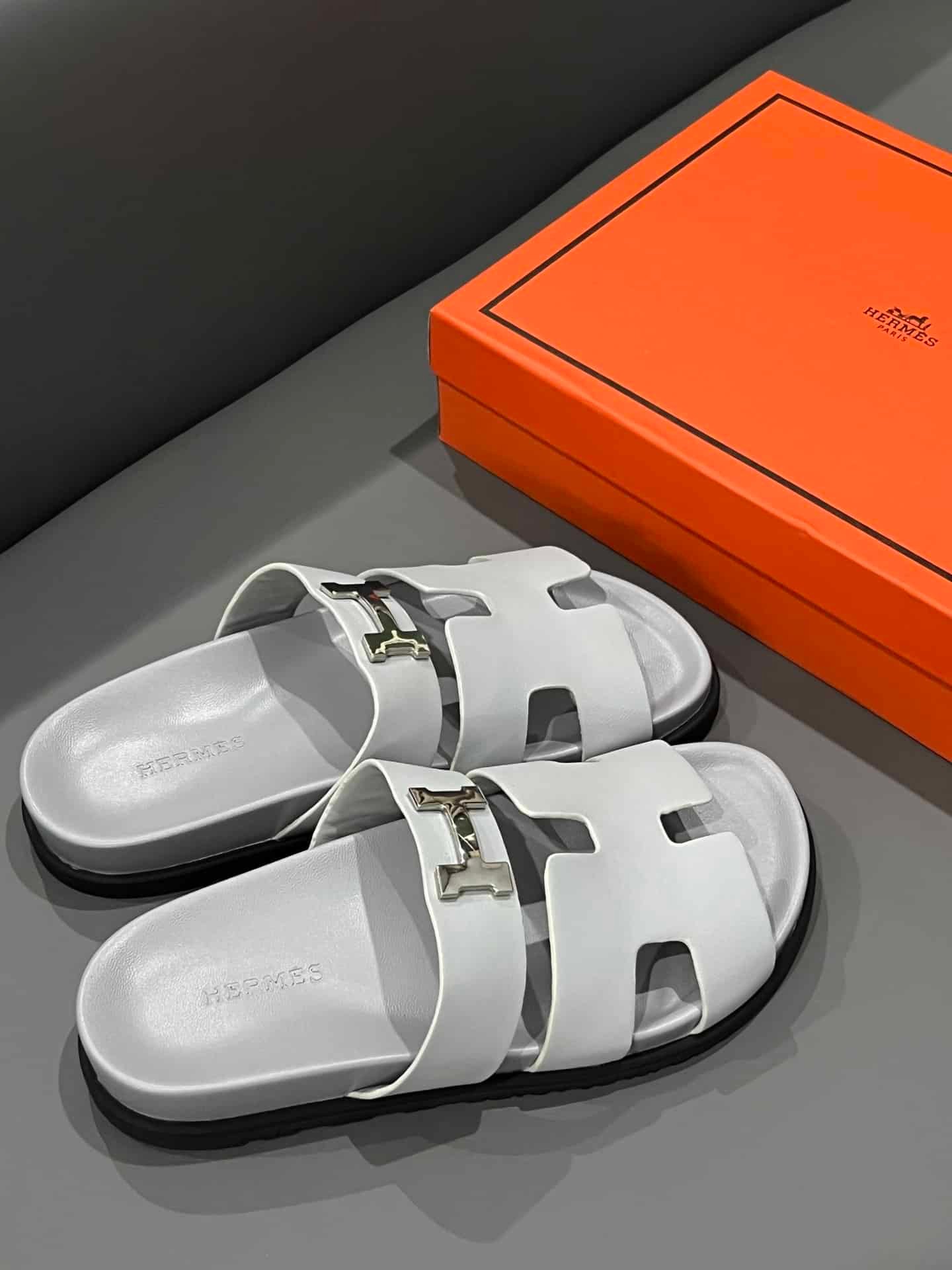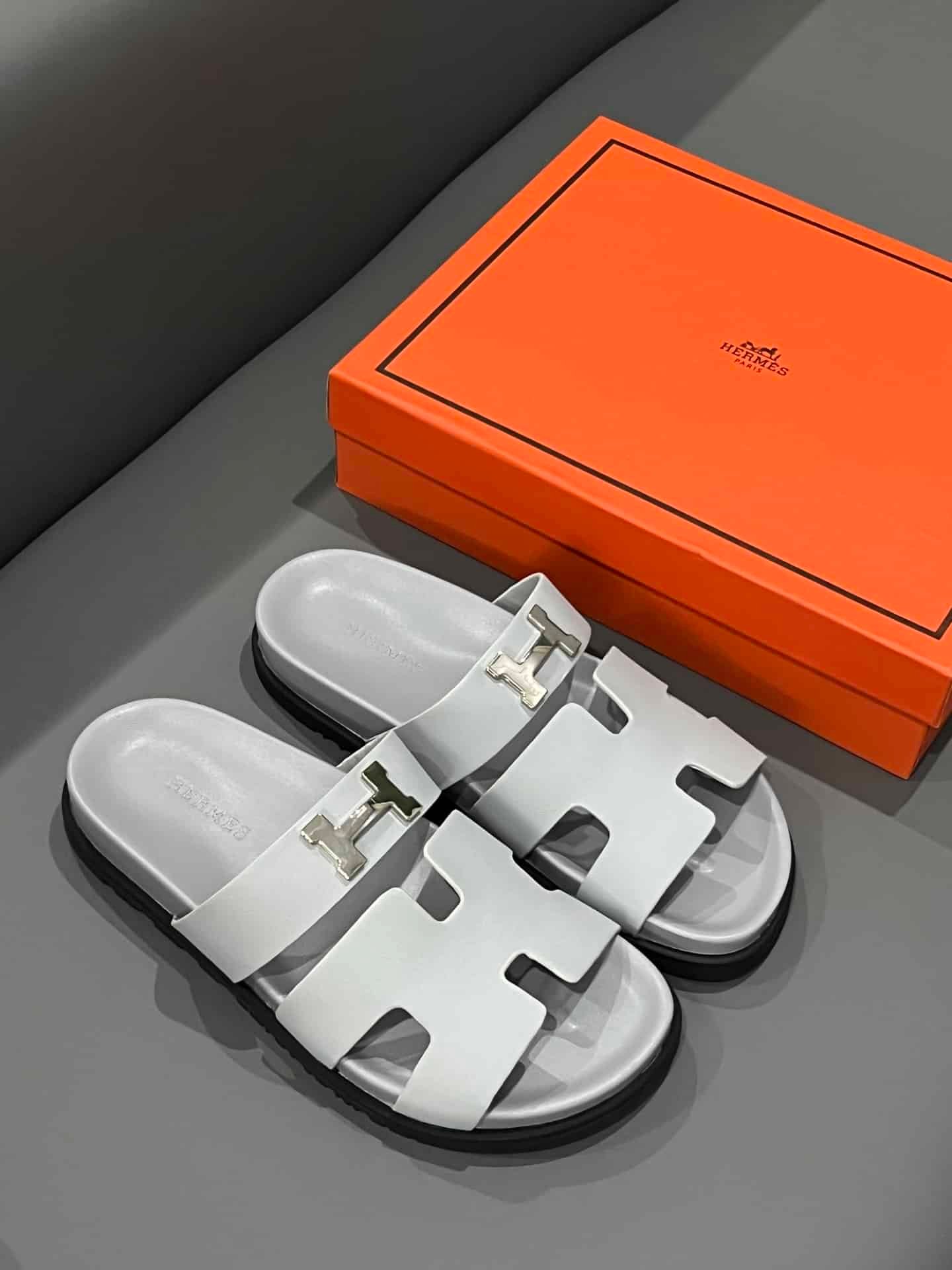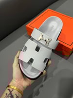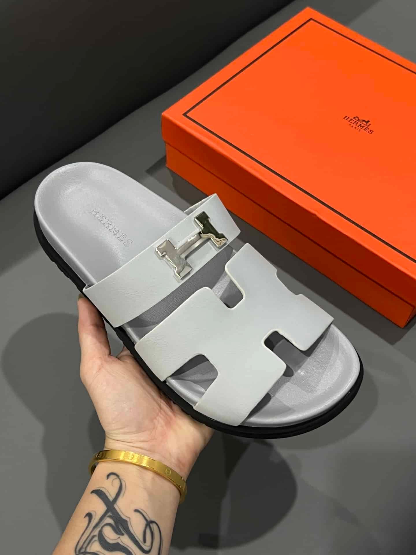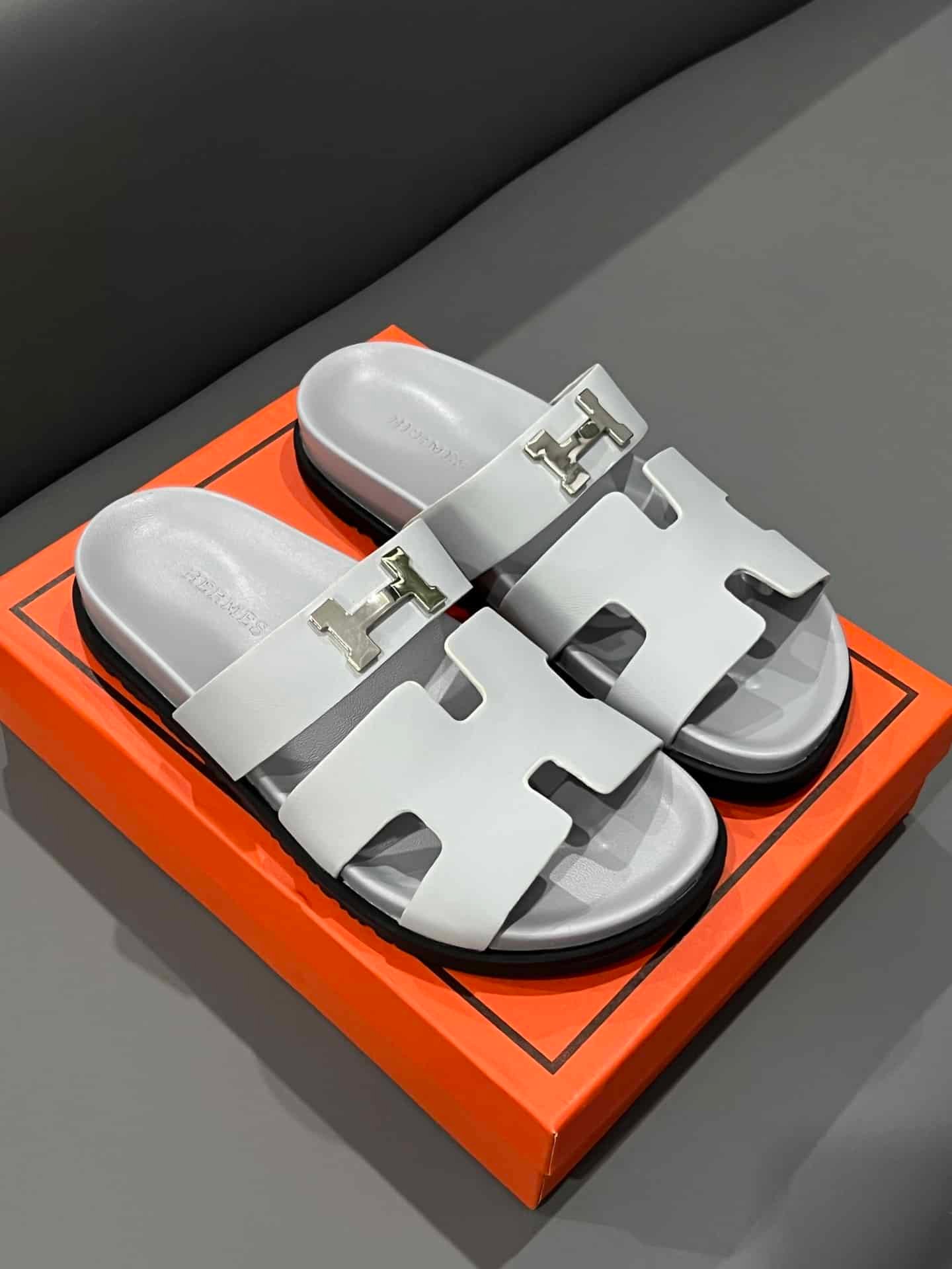 Hermes Chypre Sandal H Logo Silver Hardware Light Grey