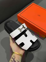 Hermes Chypre Sandal H Logo Silver Hardware White