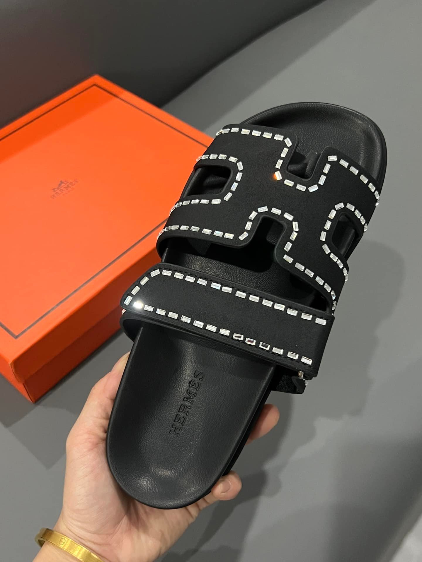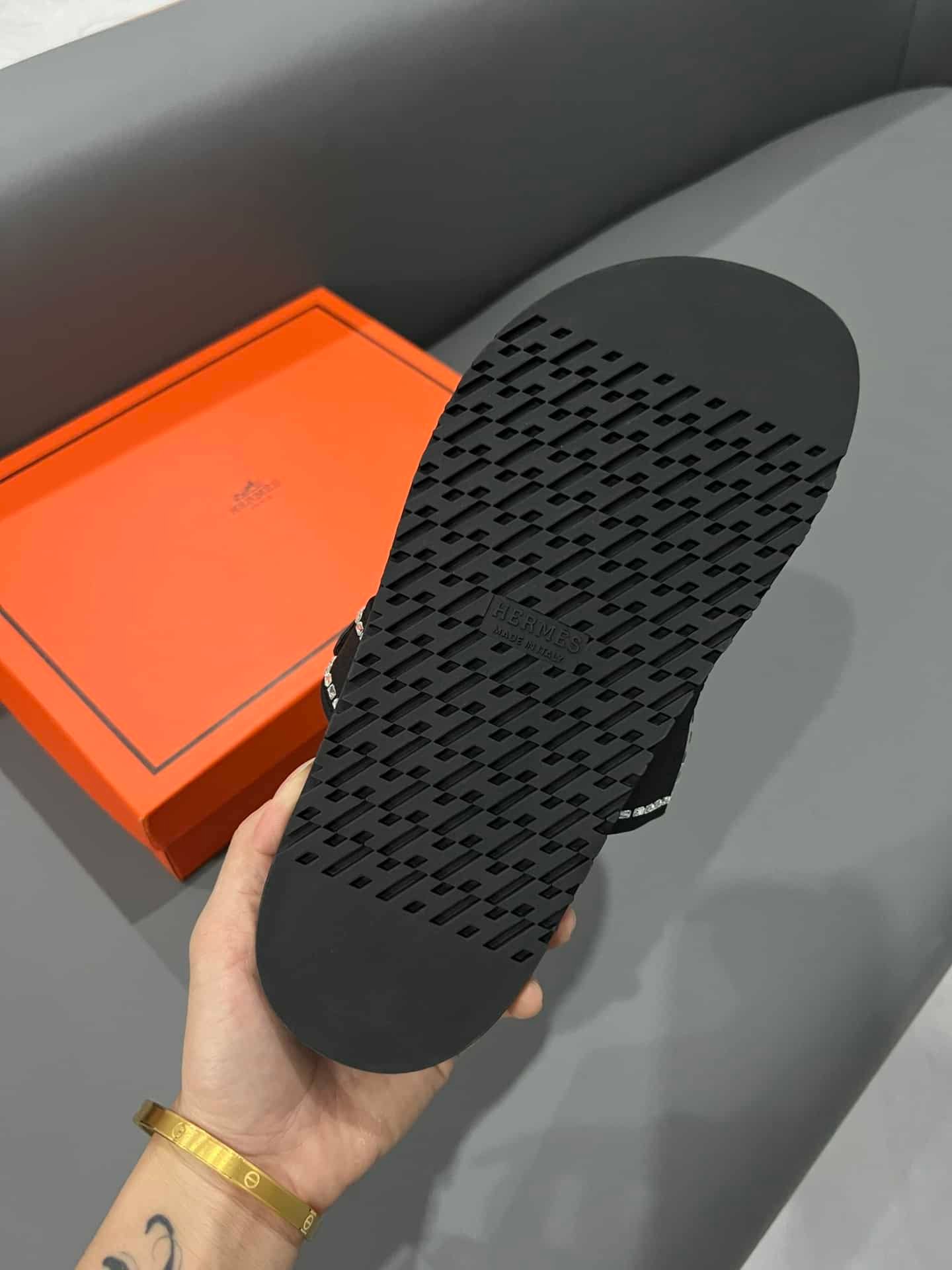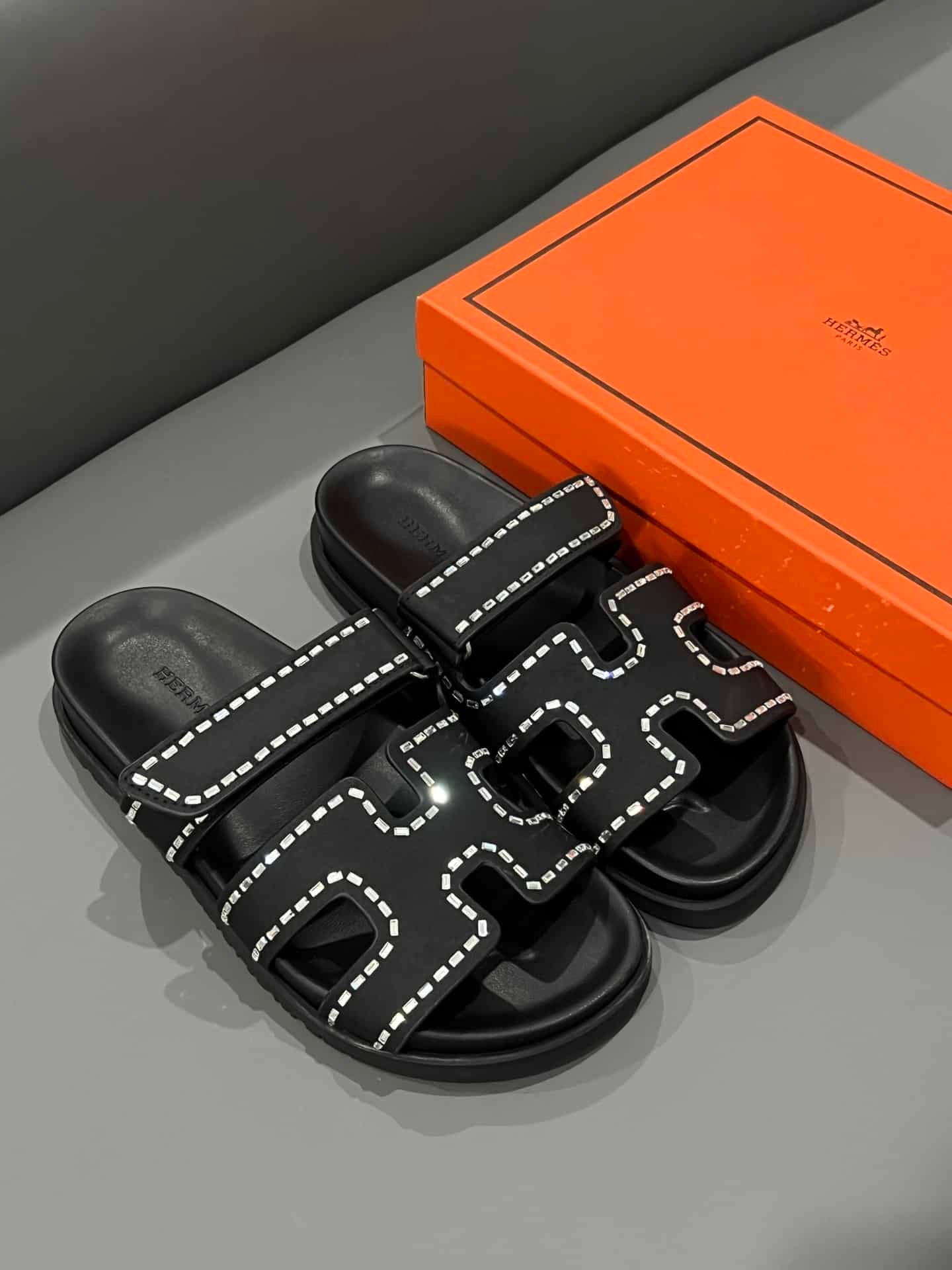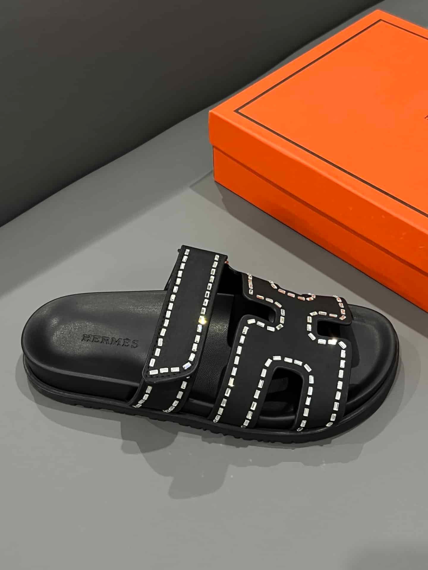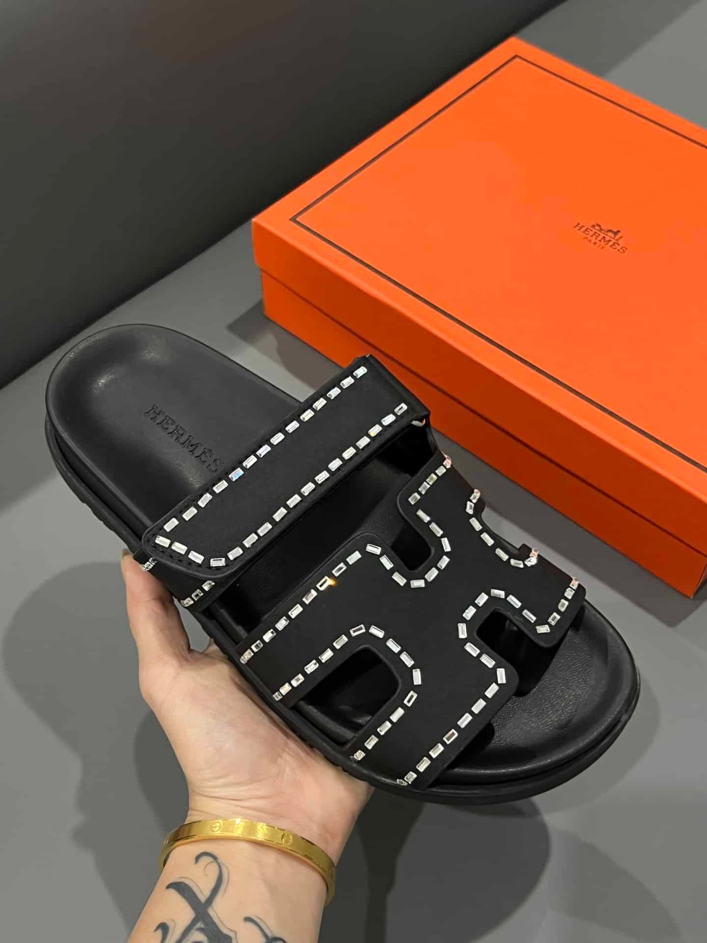 Hermes Oran Sandal Crystle Black H212010Z 02360