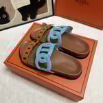 Hermes Slippers Flat Oran Full Dark Blue H202272Z 3L365