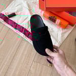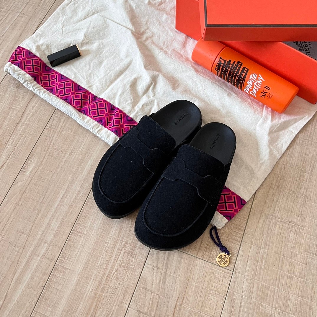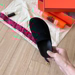 Hermes Slippers Flat Oran Silver And Black H021056Z