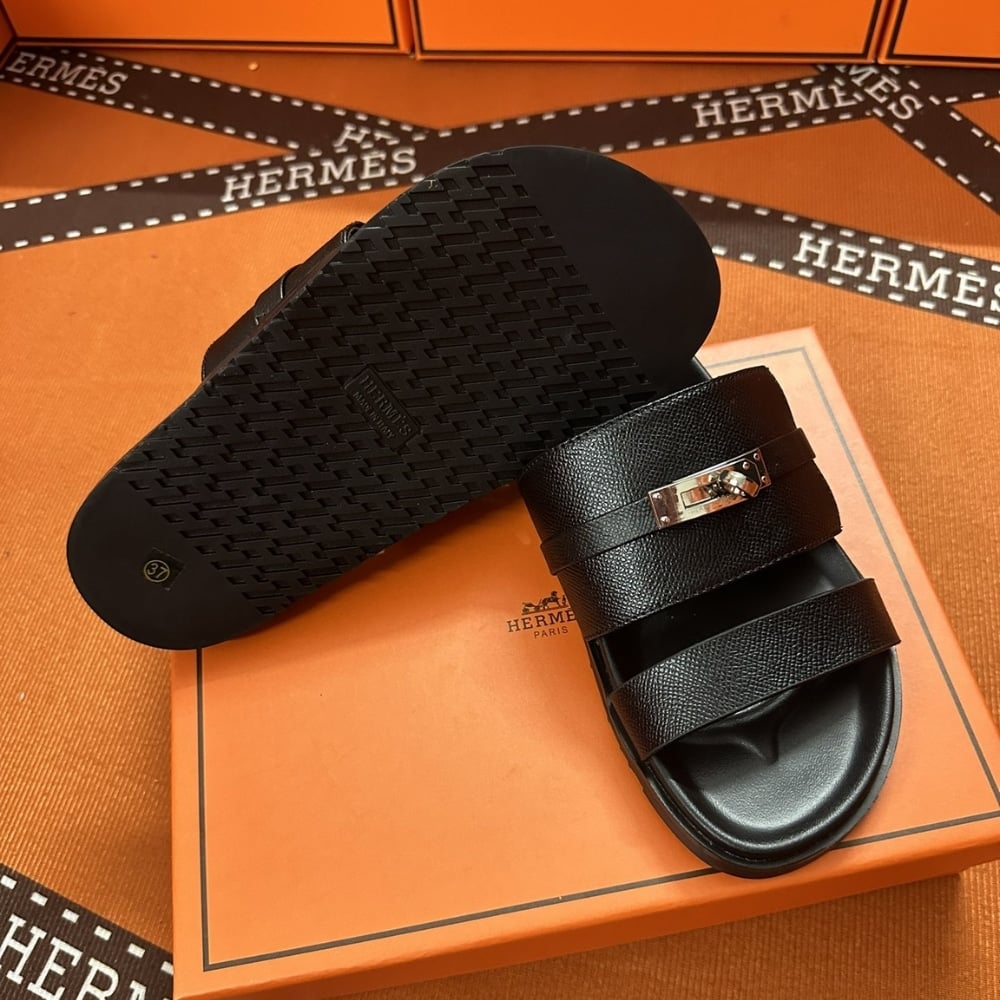 Hermes Slippers Flat Oran Silver And Black H021056Z