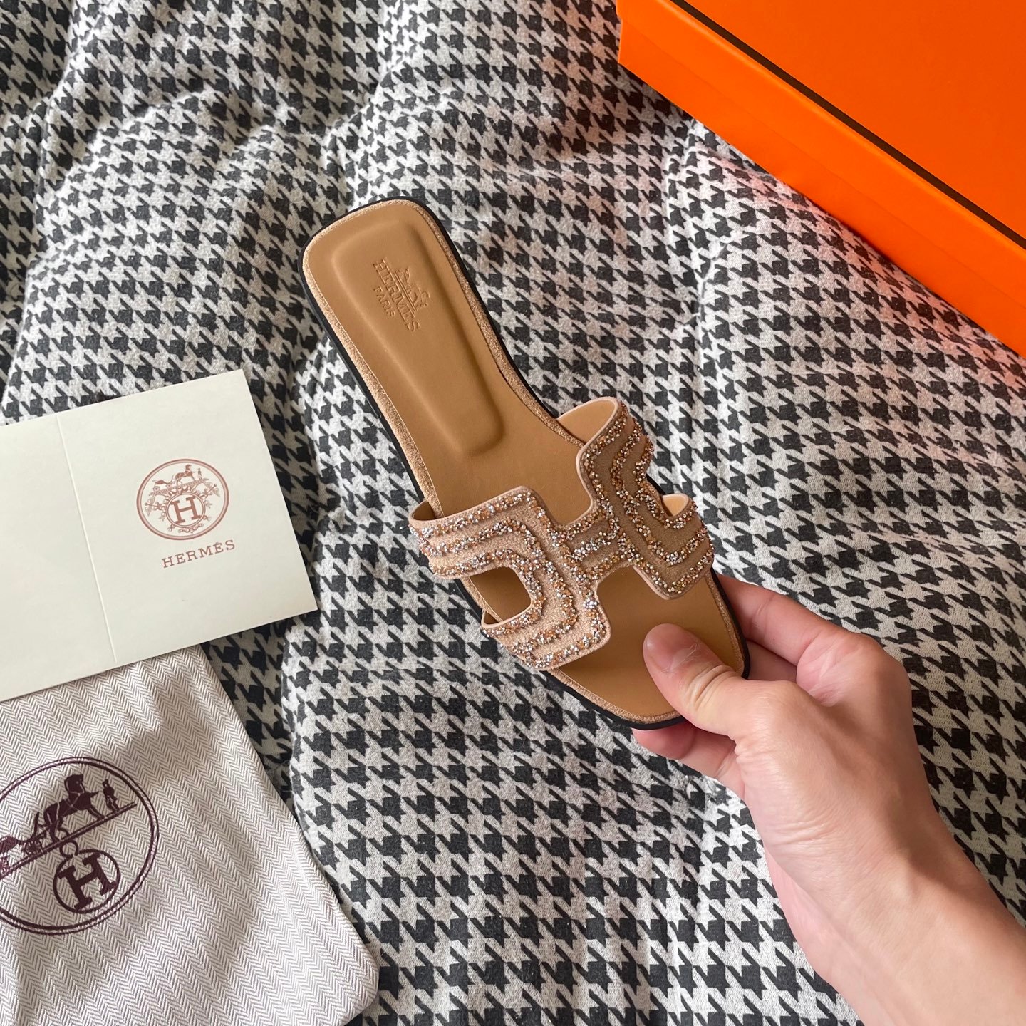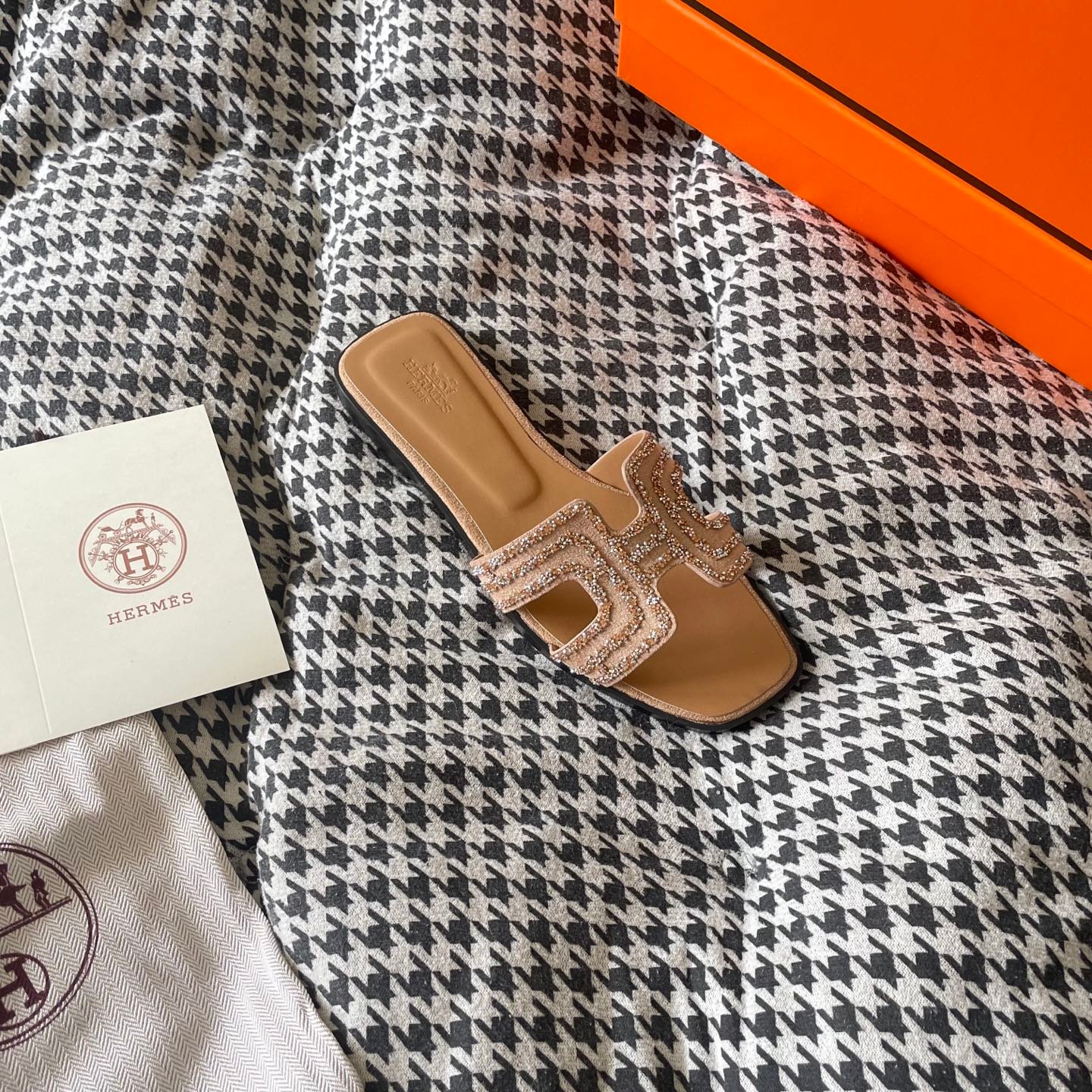 Hermes Slippers Flat Oran Turquoise H202272Z 3L365