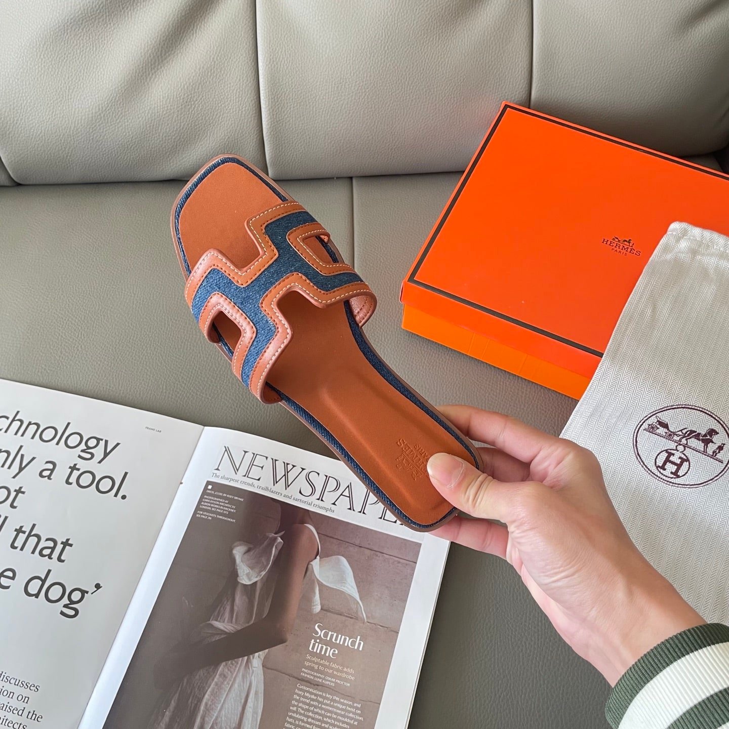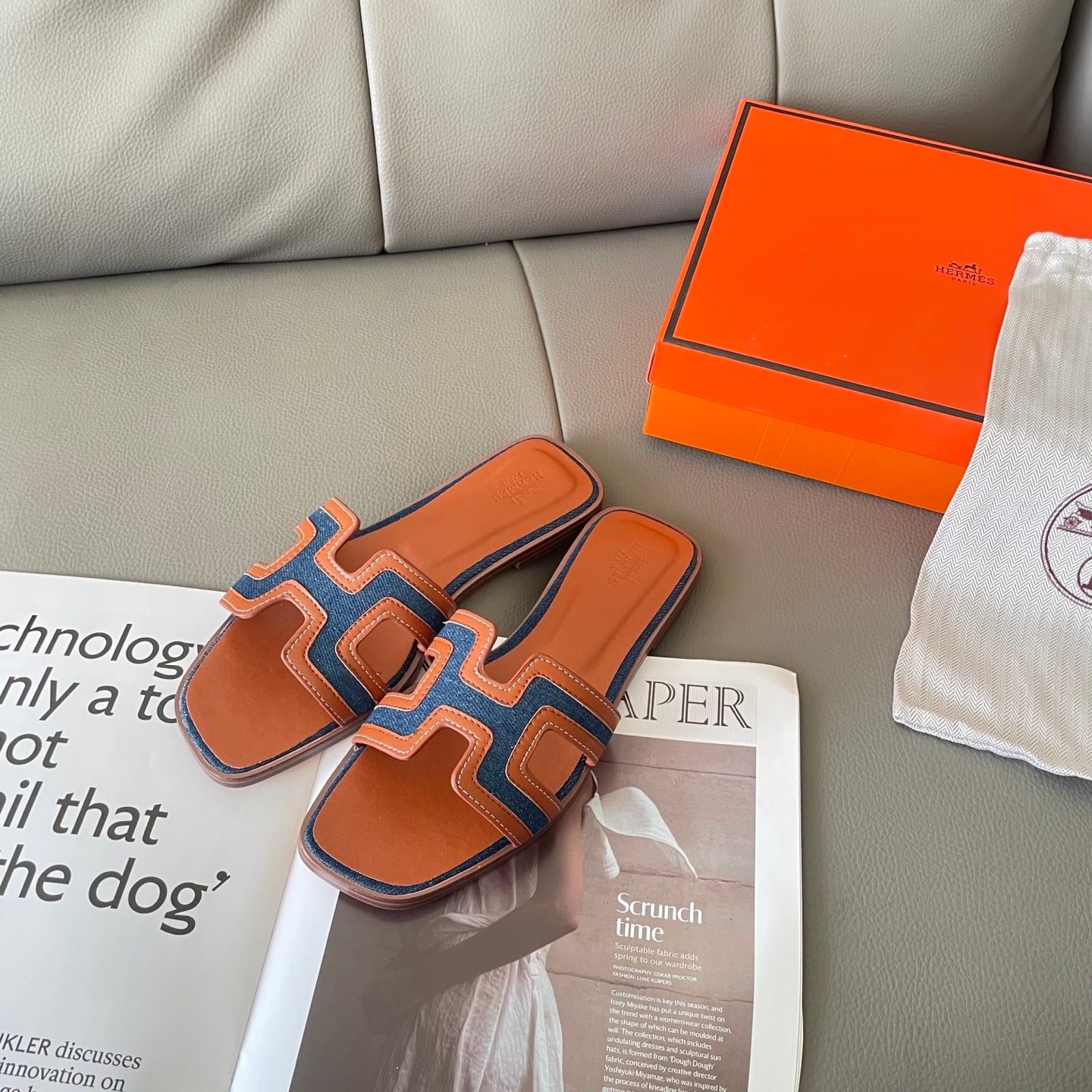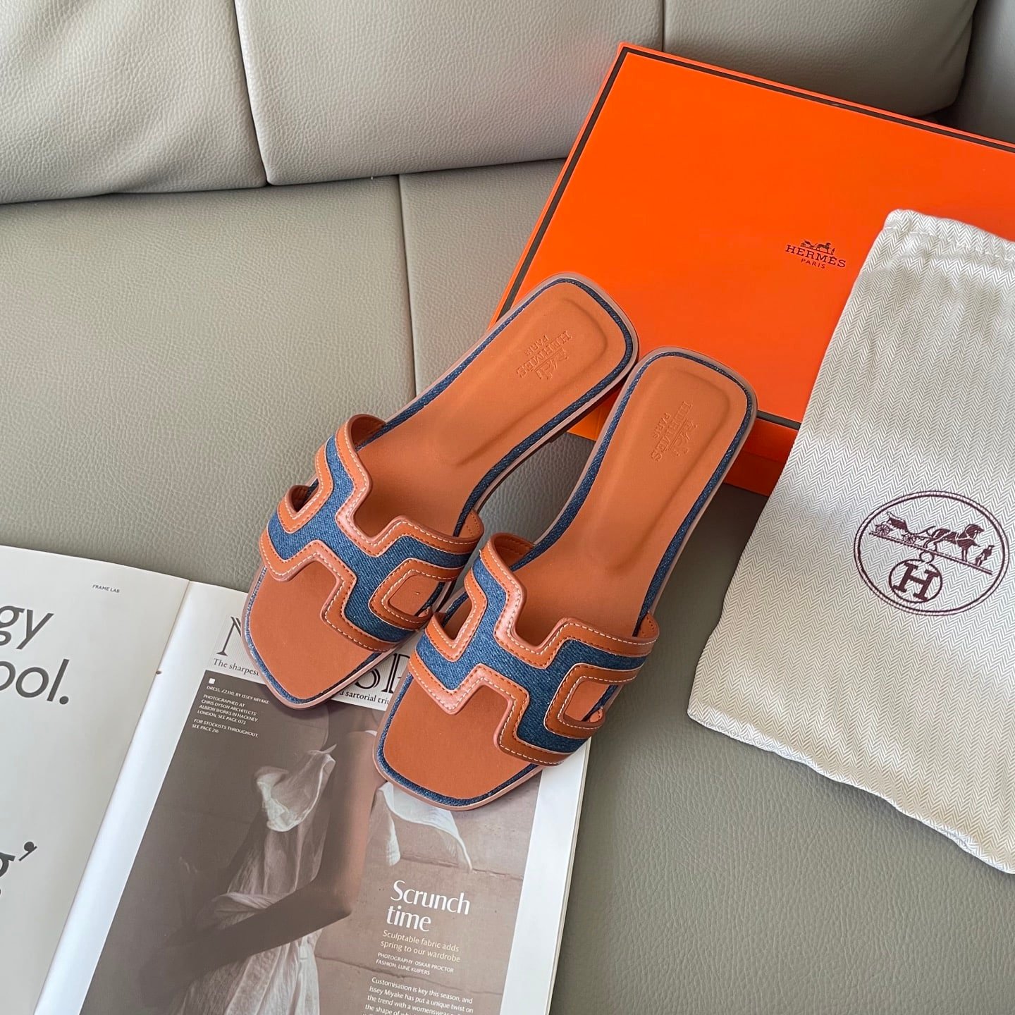 Hermes Slippers Flat Oran Turquoise H202272Z 3L365
