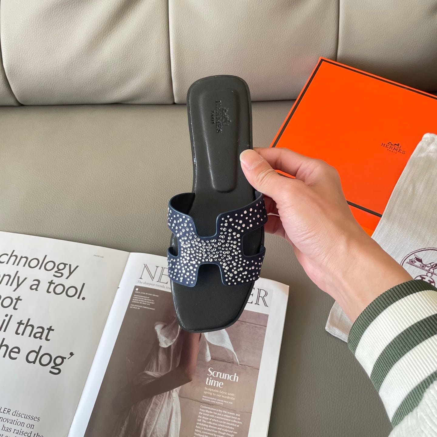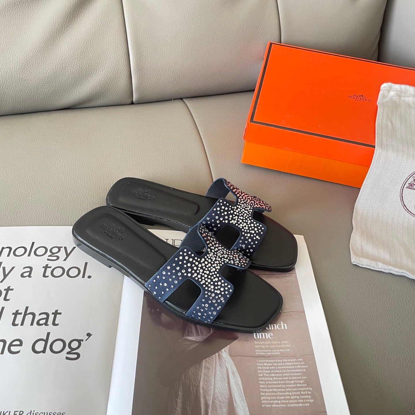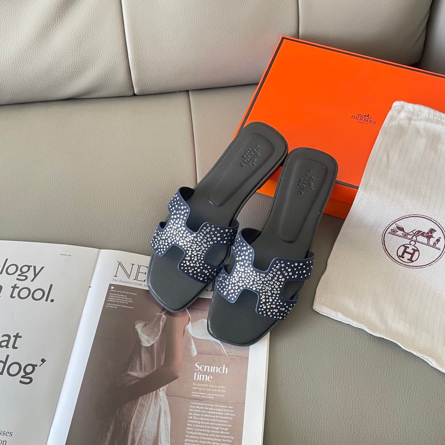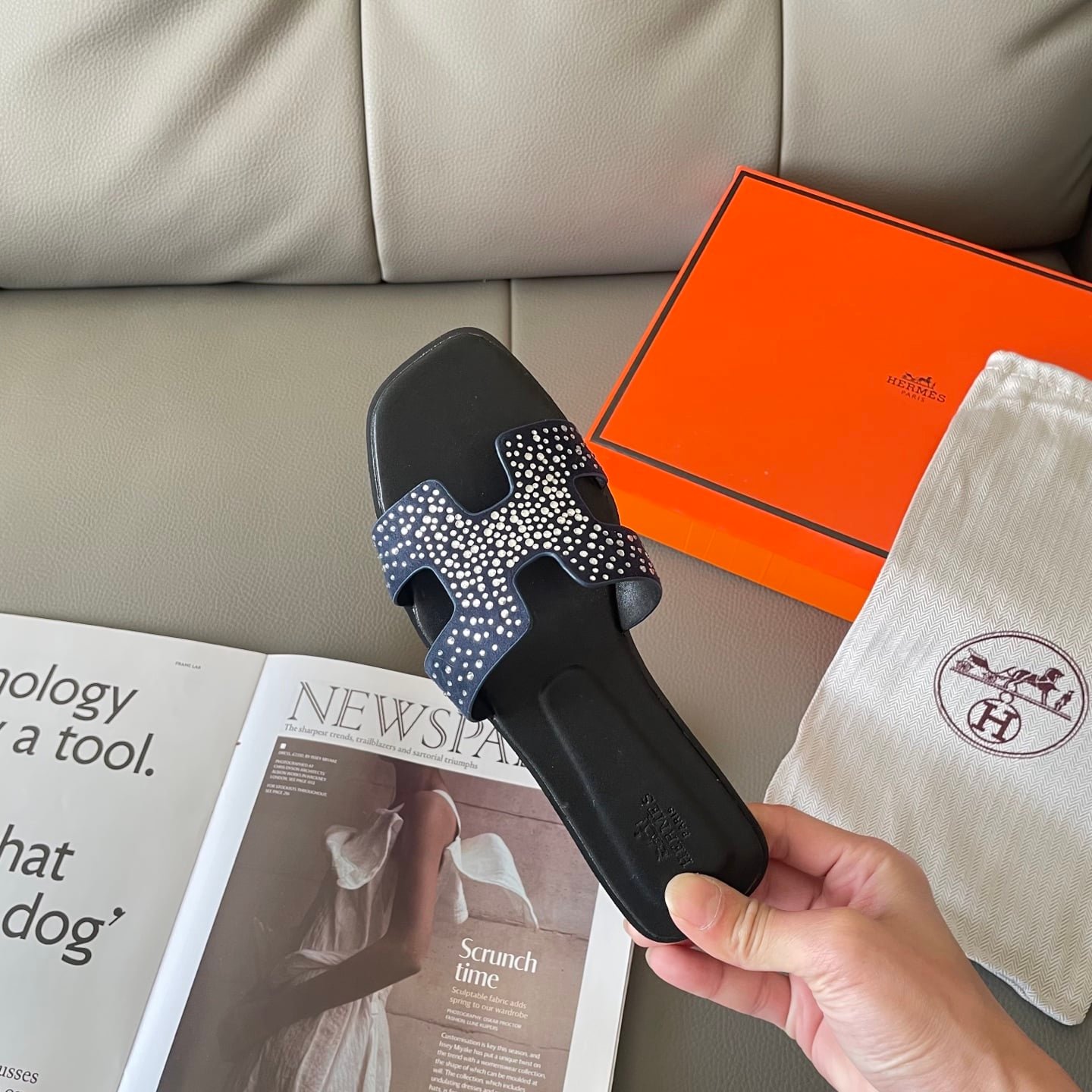Hermes Oran Sandal Crystle Black H212010Z 02360