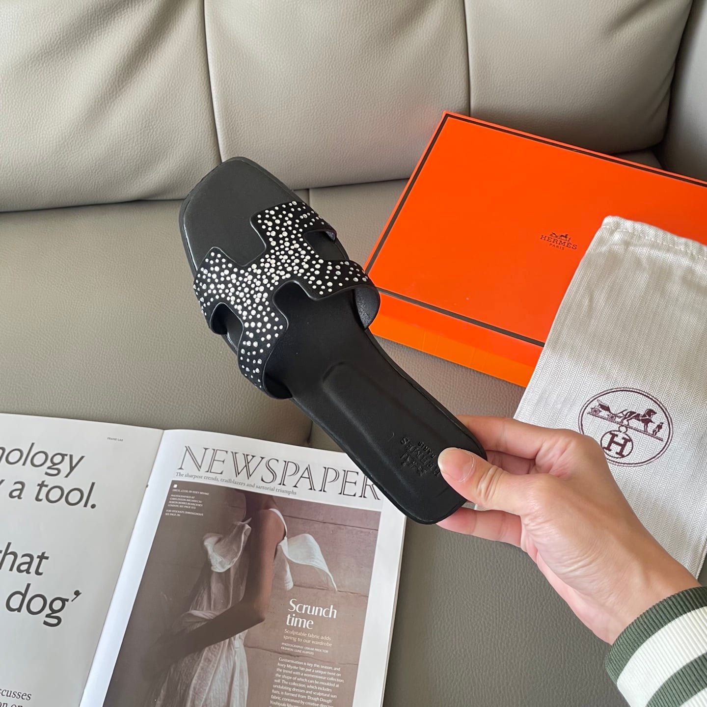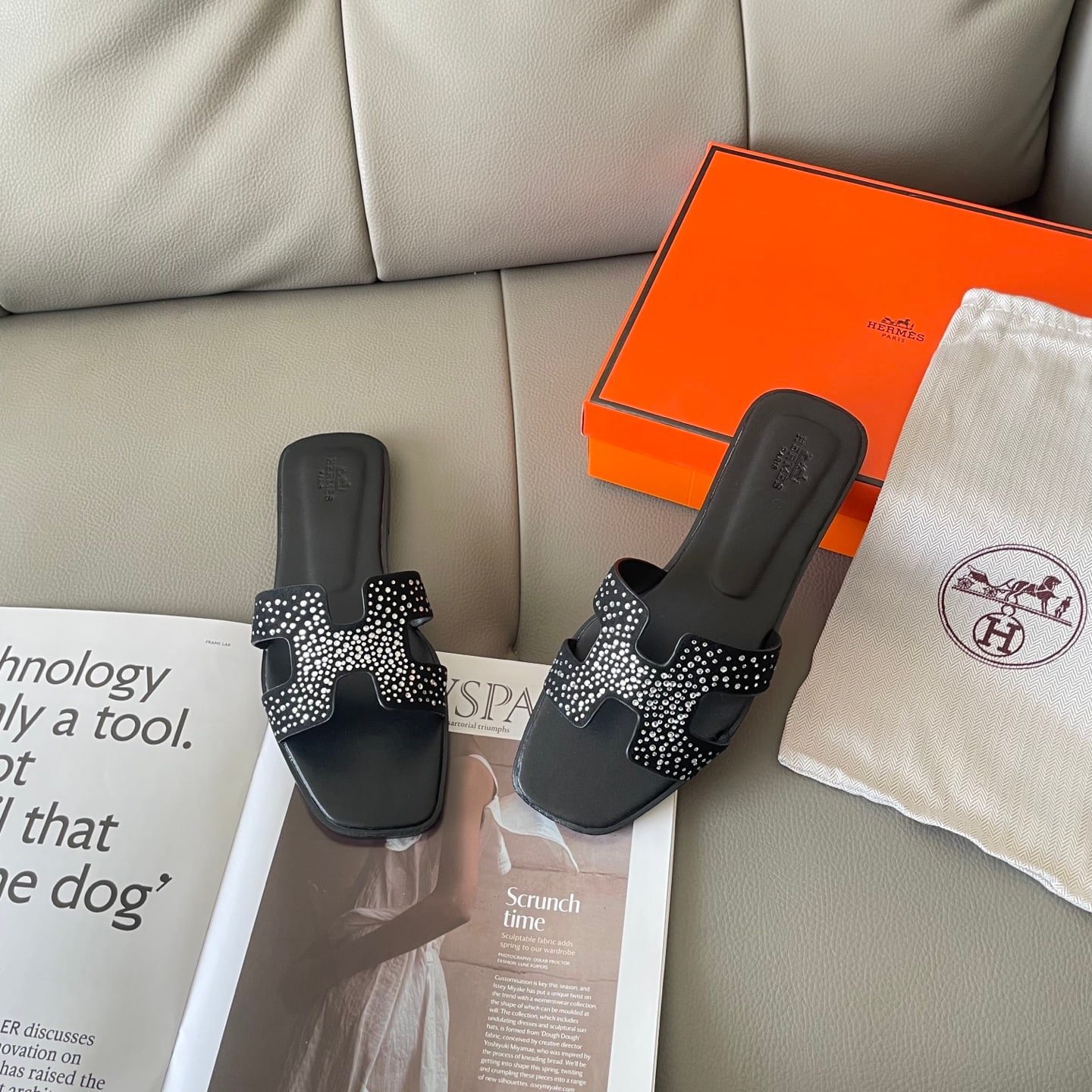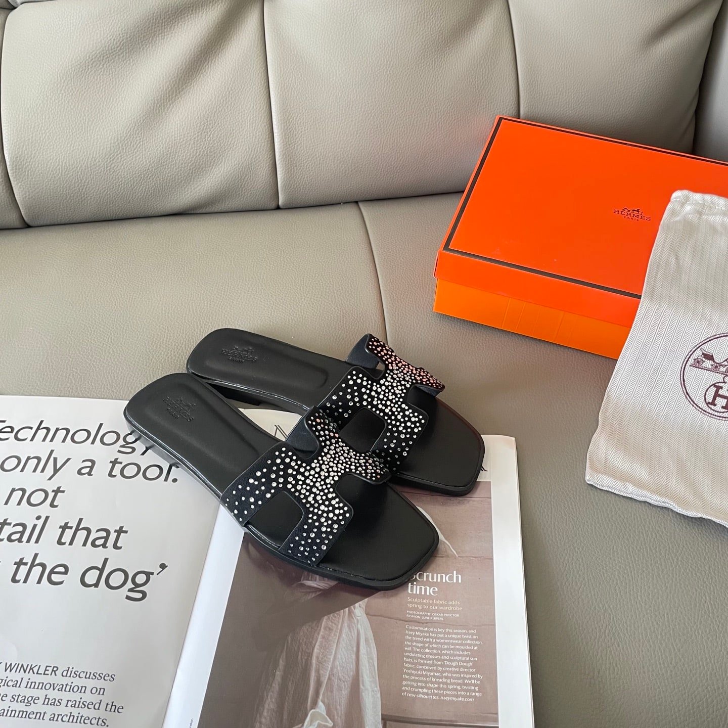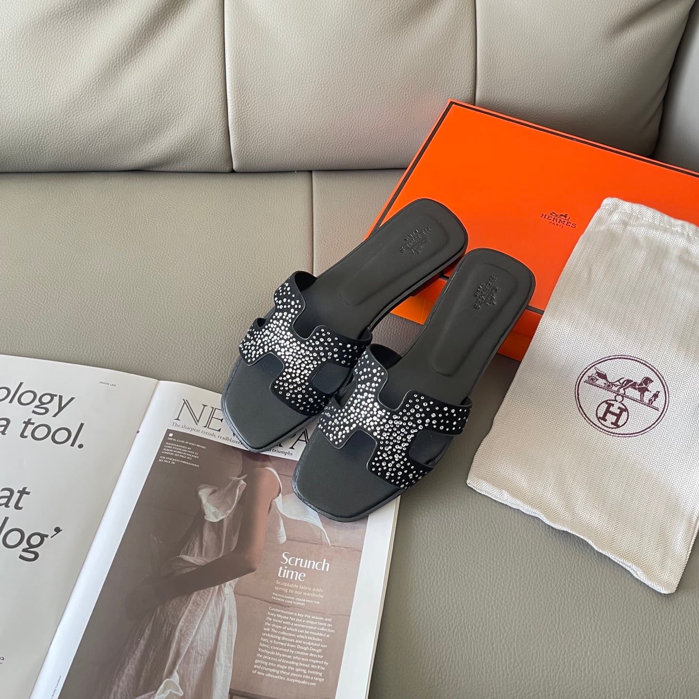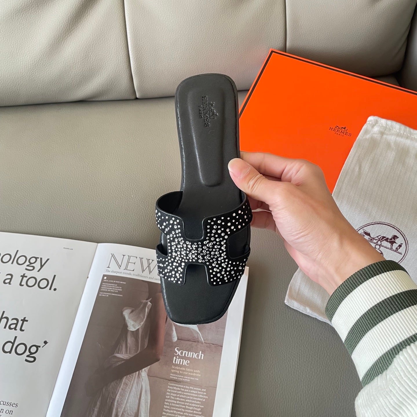Hermes Oran Sandal Crystle Black H212010Z 02360