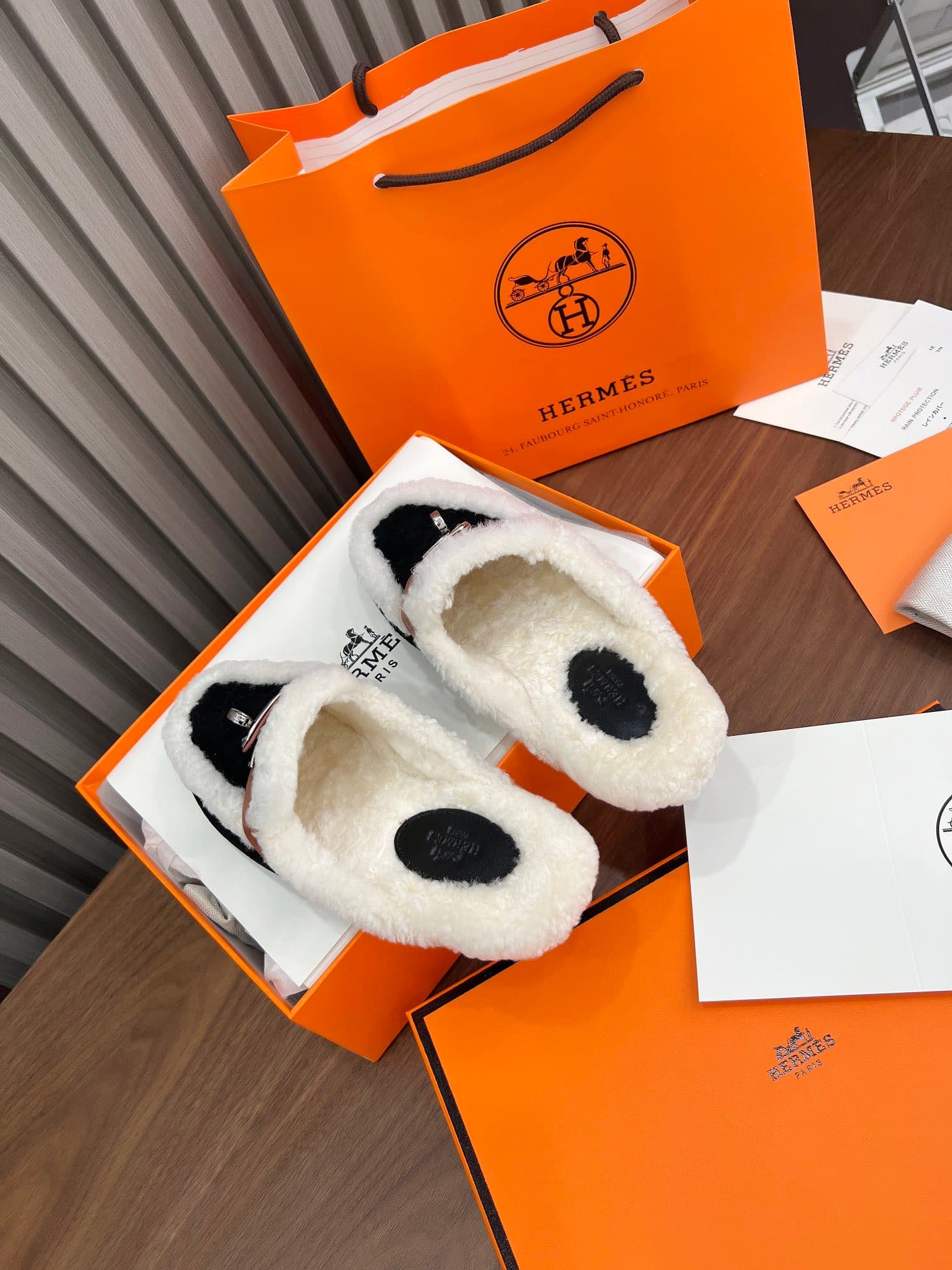 Hermes Slippers Flat Oran Full White H202272Z 2V350