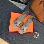 Hermes Chypre Flat Sandals Denim Brown
