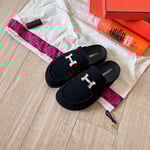 Hermes Slippers Flat Oran Full Dark Blue H202272Z 3L365
