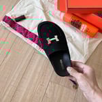 Hermes Slippers Flat Oran Silver And Black H021056Z
