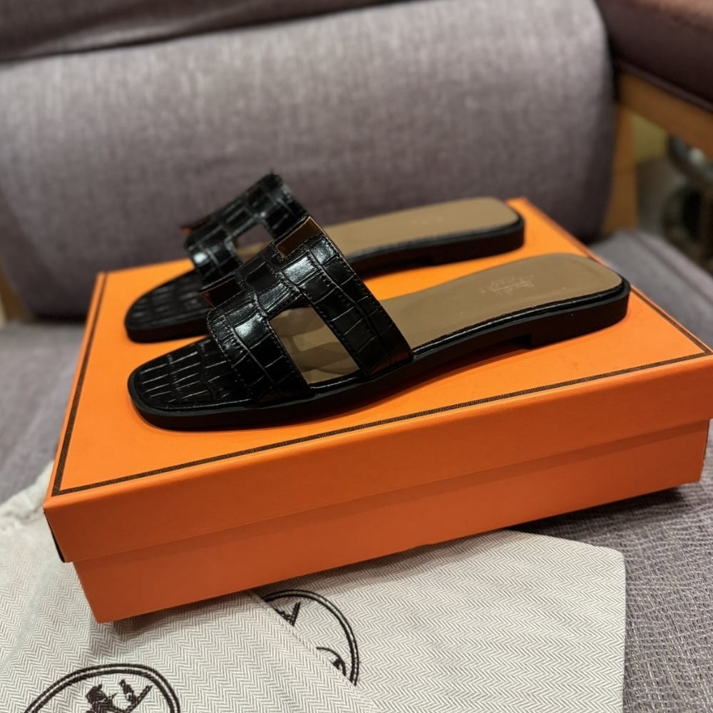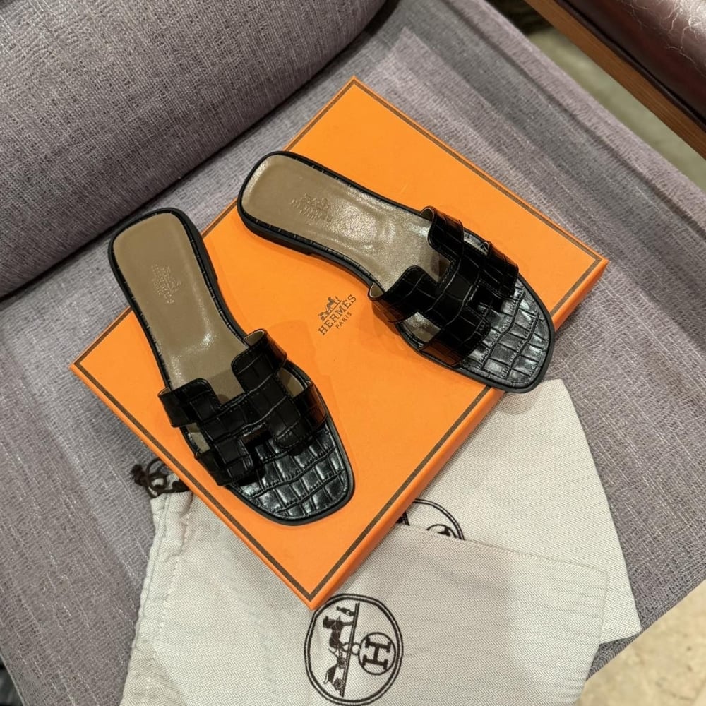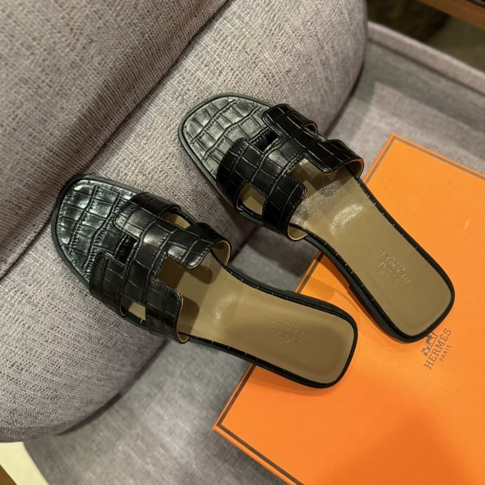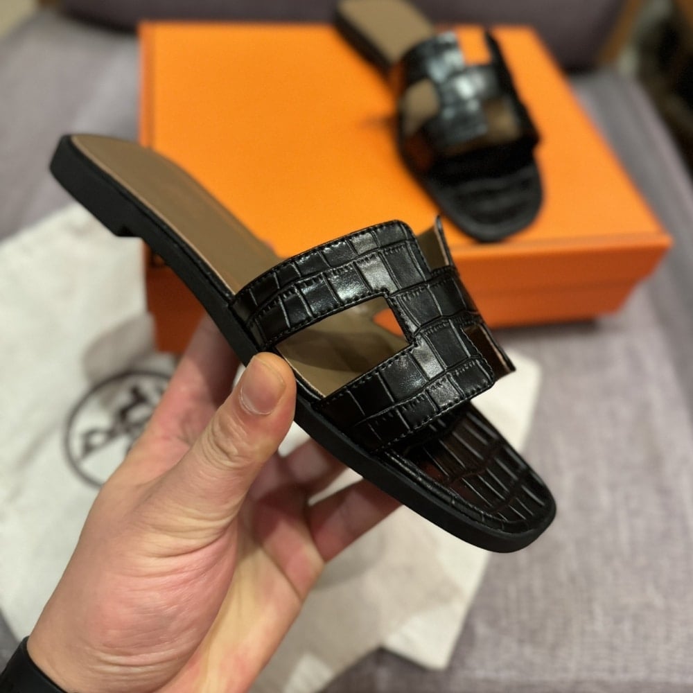 Herm?S Oran Sandal Alligator In Black H001089Z 01360