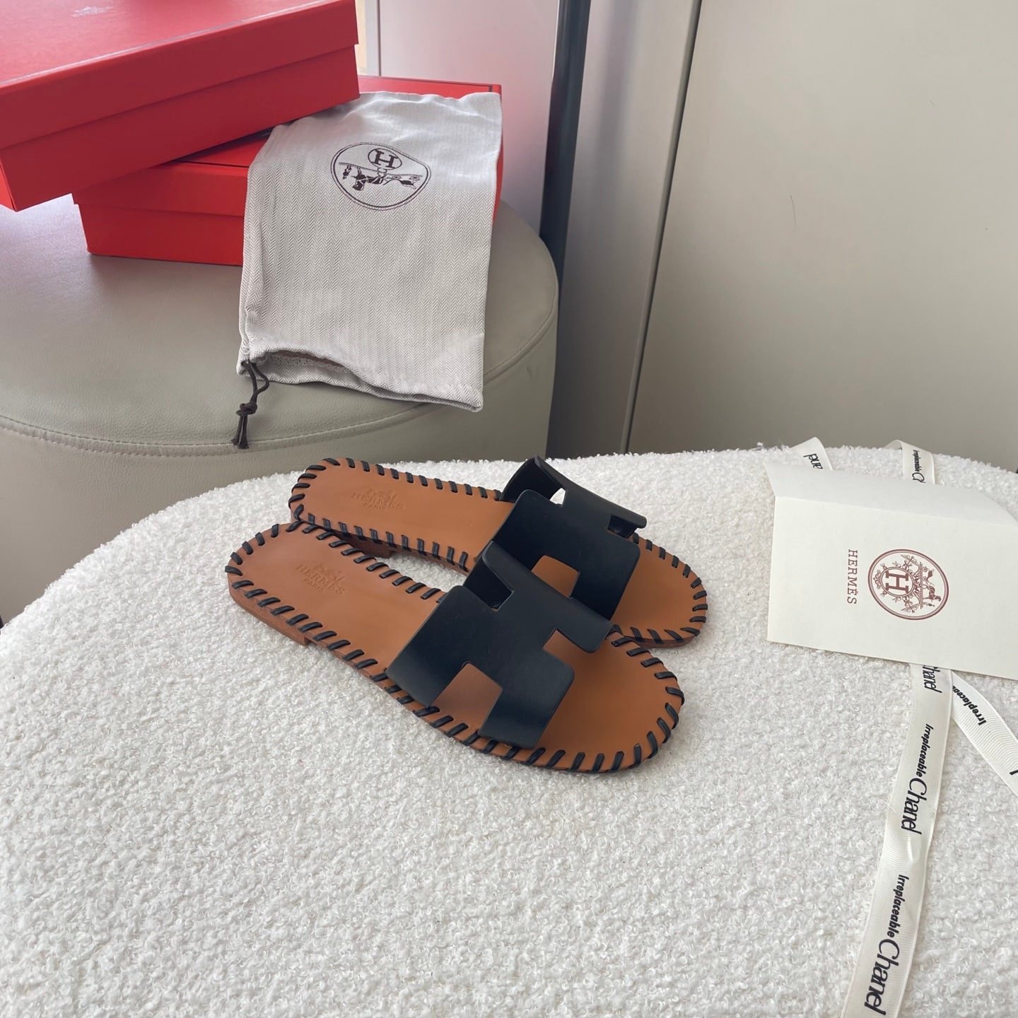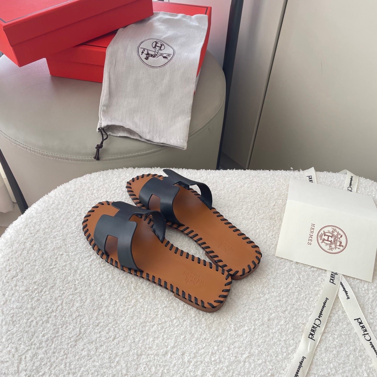 Hermes Slippers Flat Oran Black H021056Z
