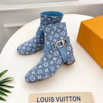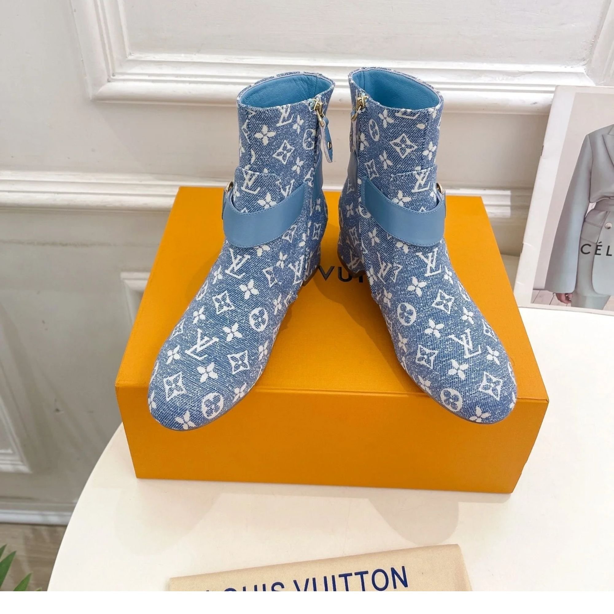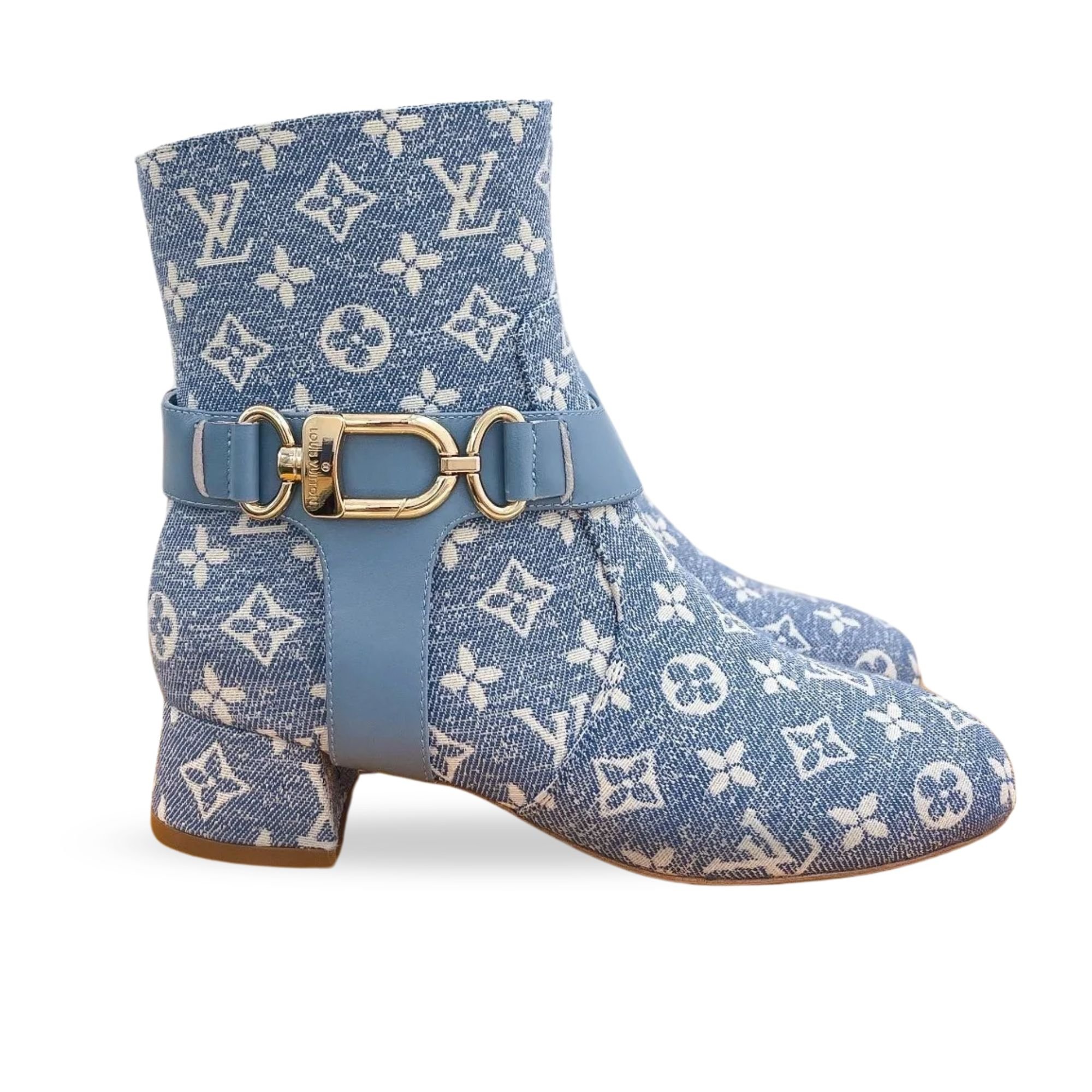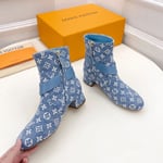 Louis Vuitton Ankle Boots 35mm Light Blue Monogram Jacquard Fabric