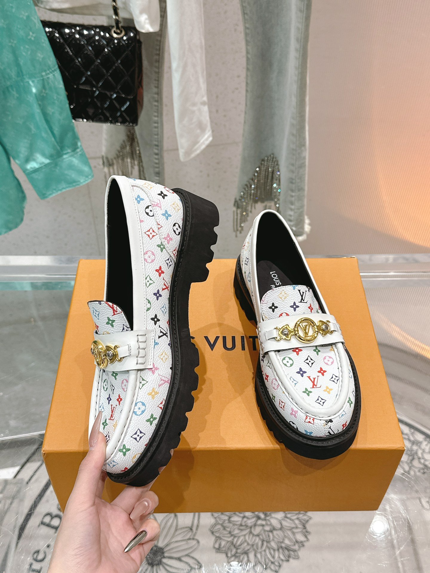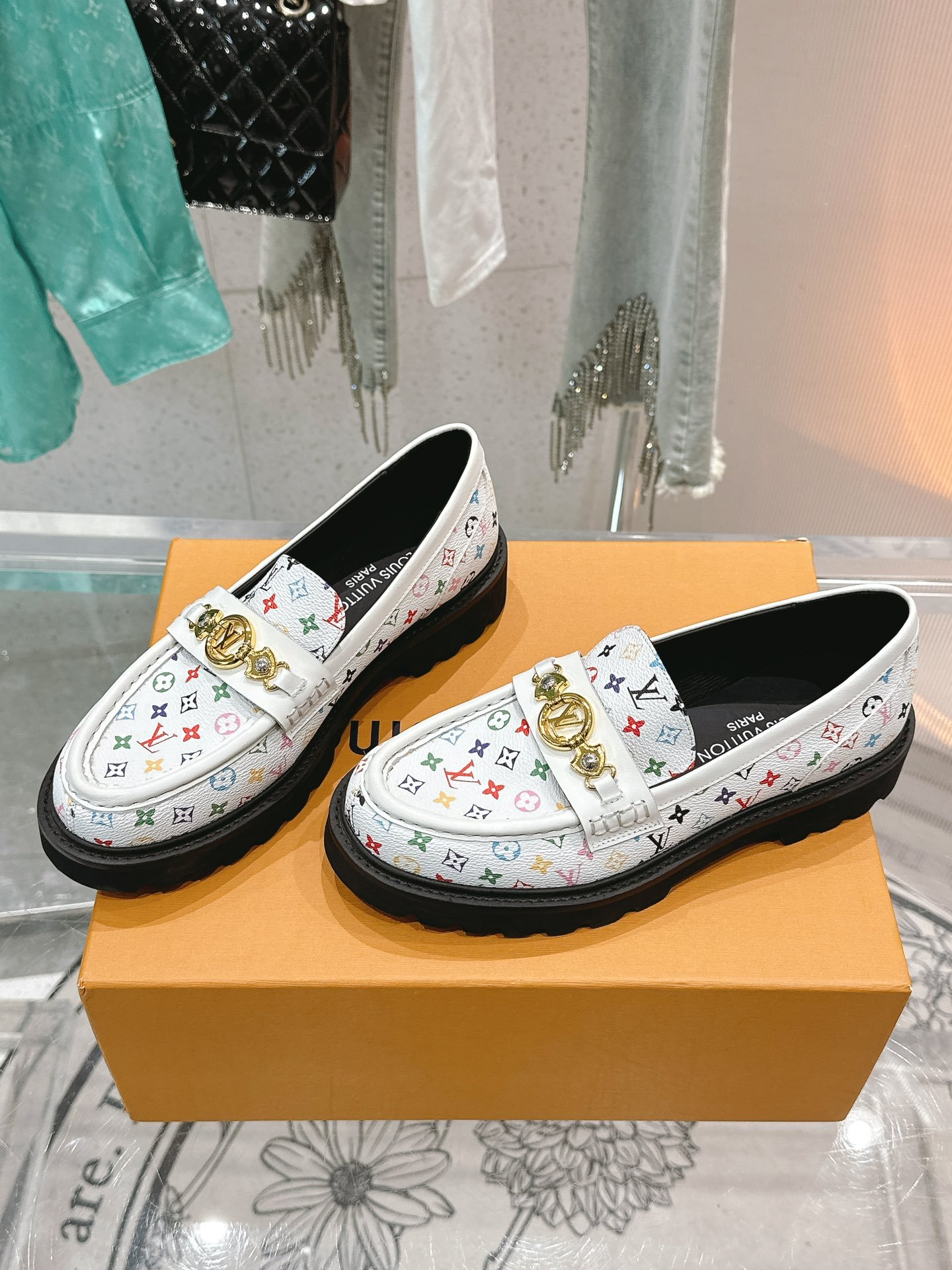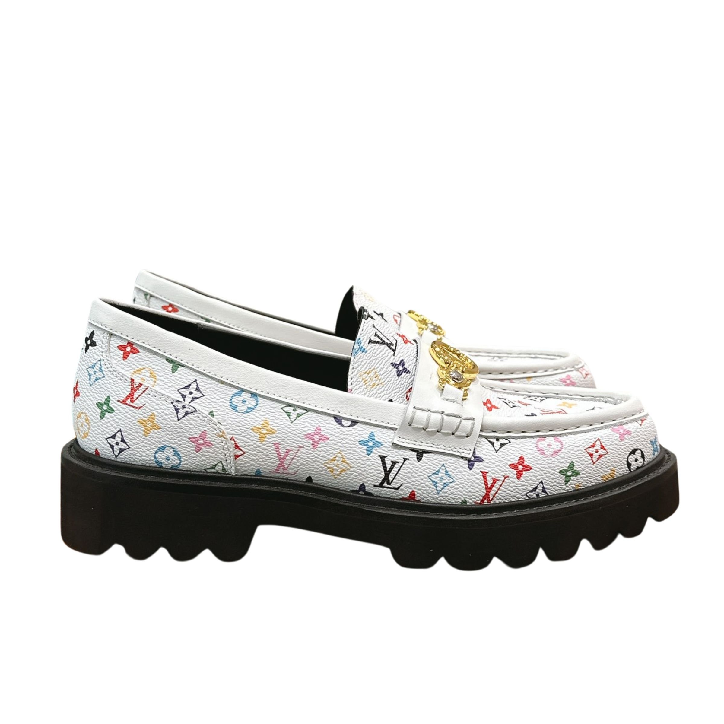 Louis Vuitton LV Monogram Multicolor White Loafers – Women’s Shoes
