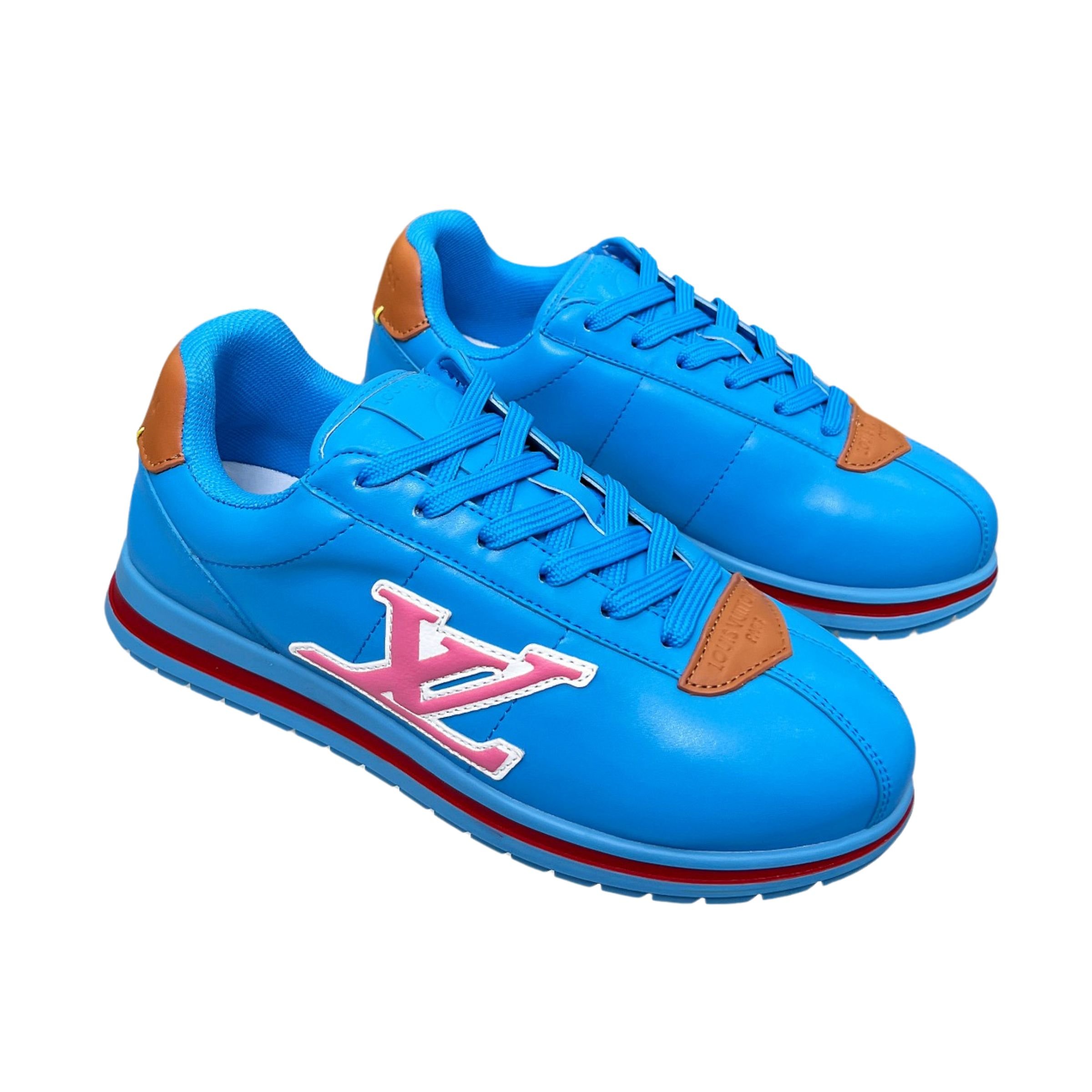 Louis Vuitton LV Trainer Sneaker Blue & Pink – Red Stripe Sole – Women’s Shoes