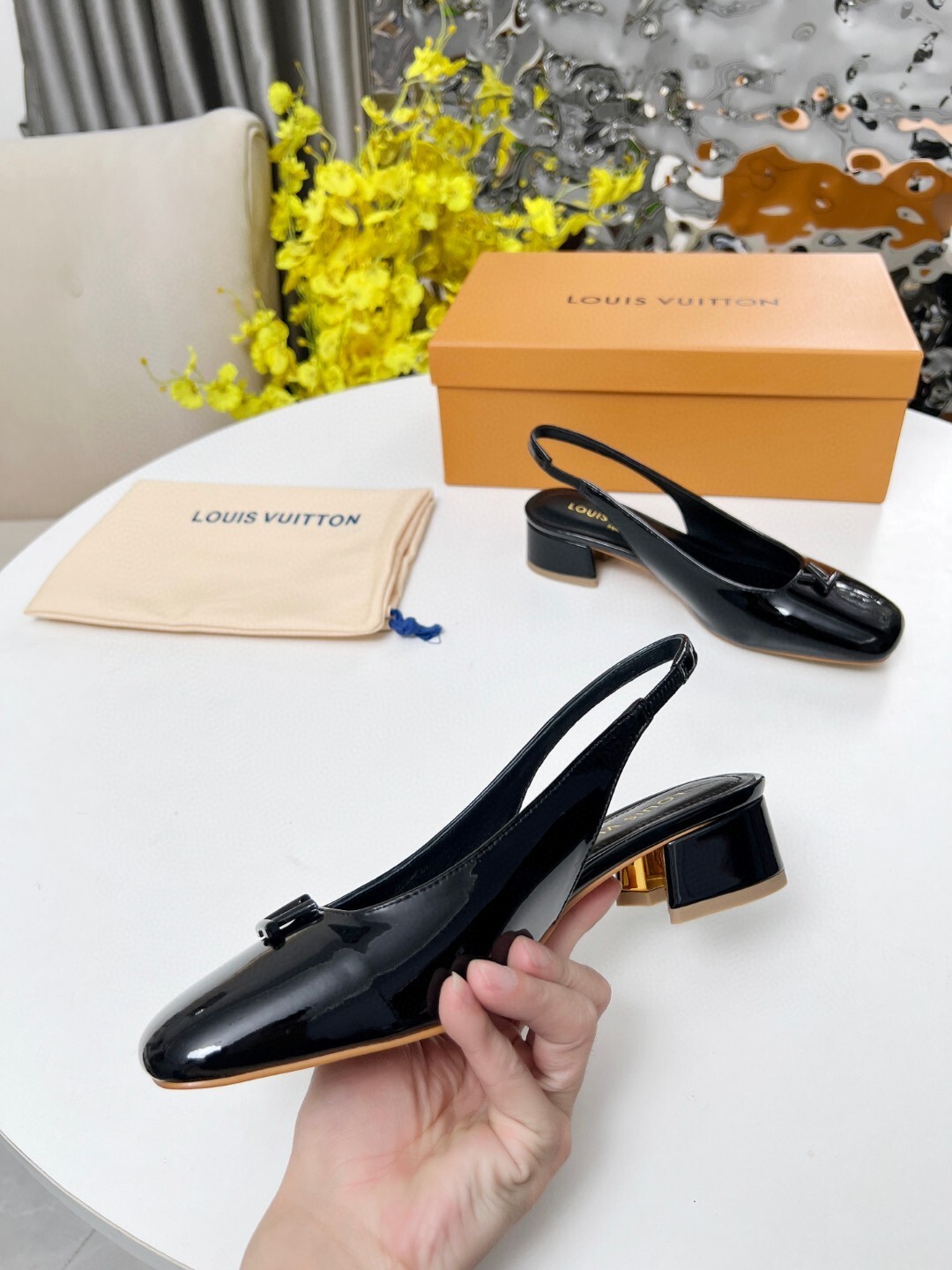 Louis Vuitton Madeleine Slingback Black Patent Leather Pumps 3.5cm