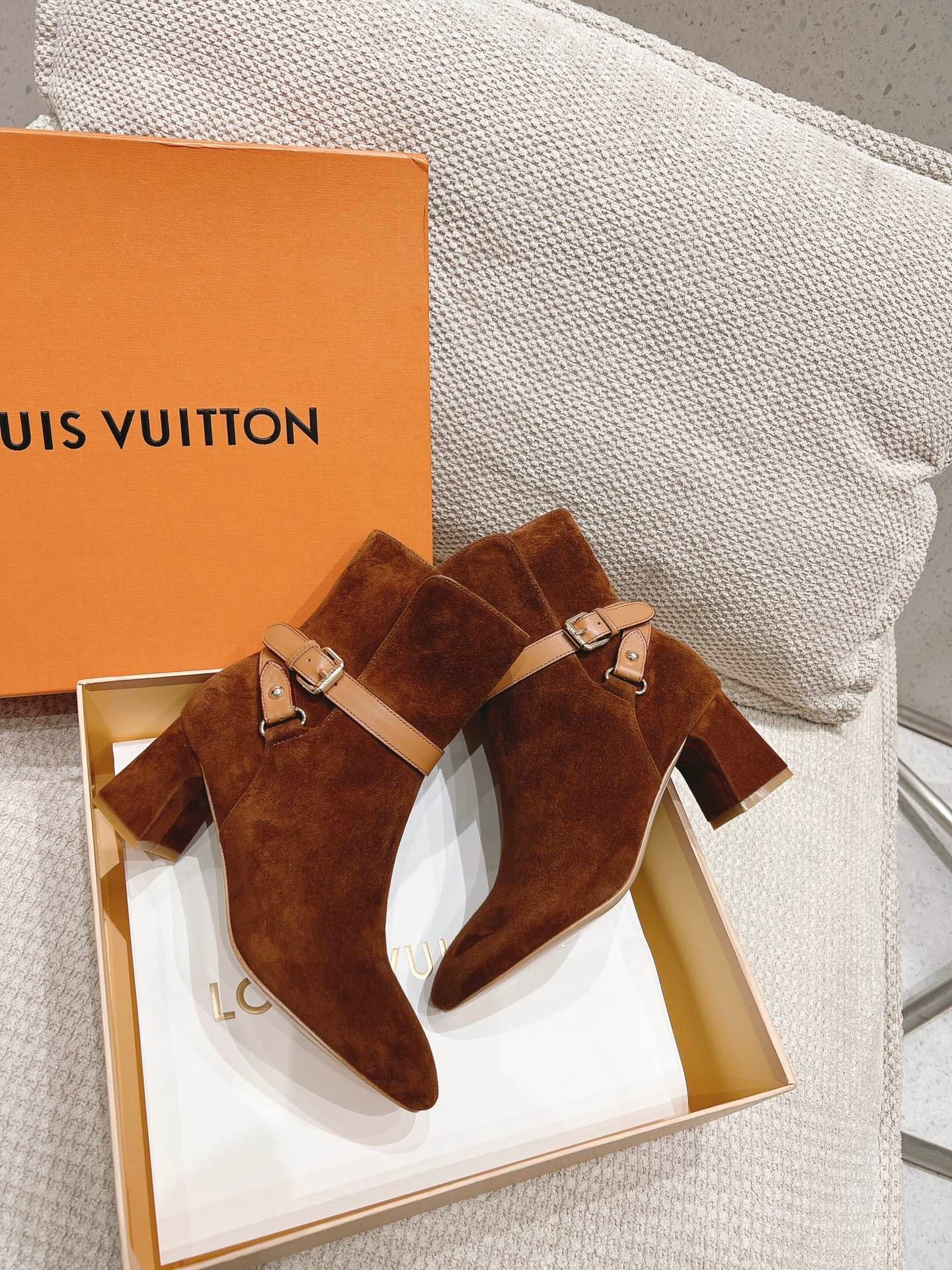 Louis Vuitton Parisienne Ankle Boot Suede Leather Brown
